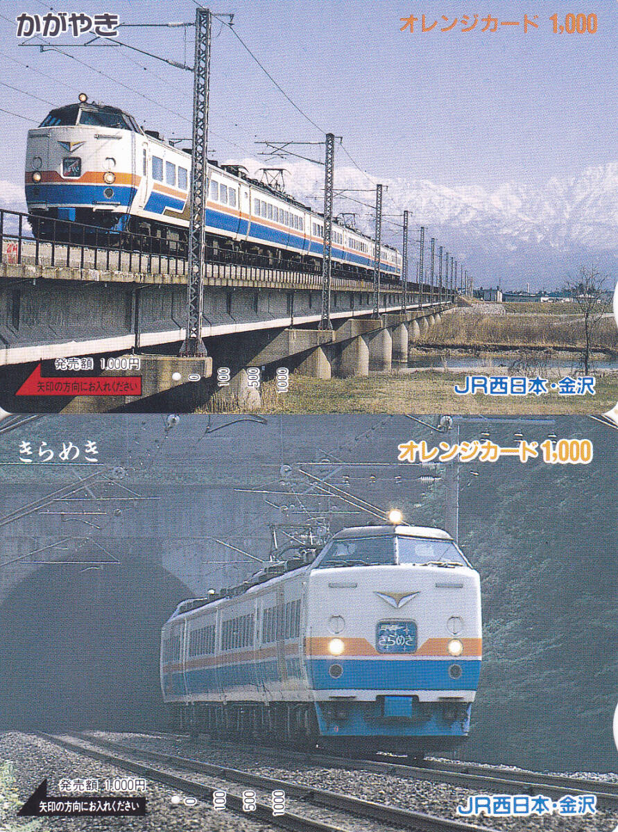 使用済オレンジカード JR西日本金沢 きらめき かがやき 1000円券2枚組 説明文参照