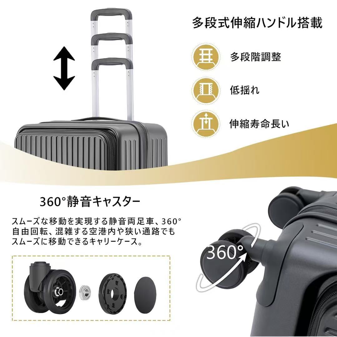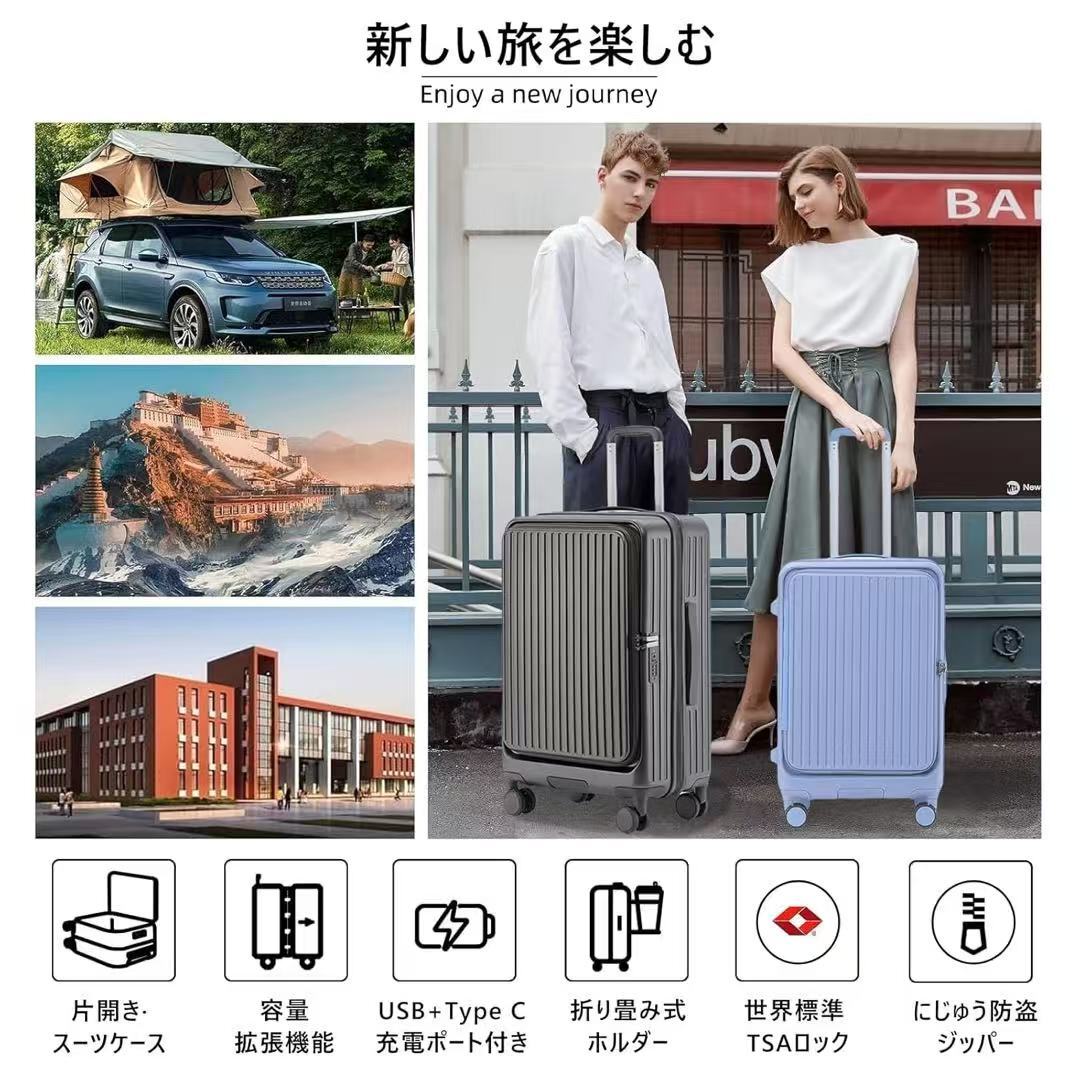 スーツケース Mサイズ キャリーケース 多機能 片開き 拡張機能付き キャリーバッグ フロントオープン USBポート付き カップホルダー付き 隠しフック機能 超軽量 耐衝撃 静音 360度回転 大容量 TSAロック搭載 旅行 ビジネス 出張