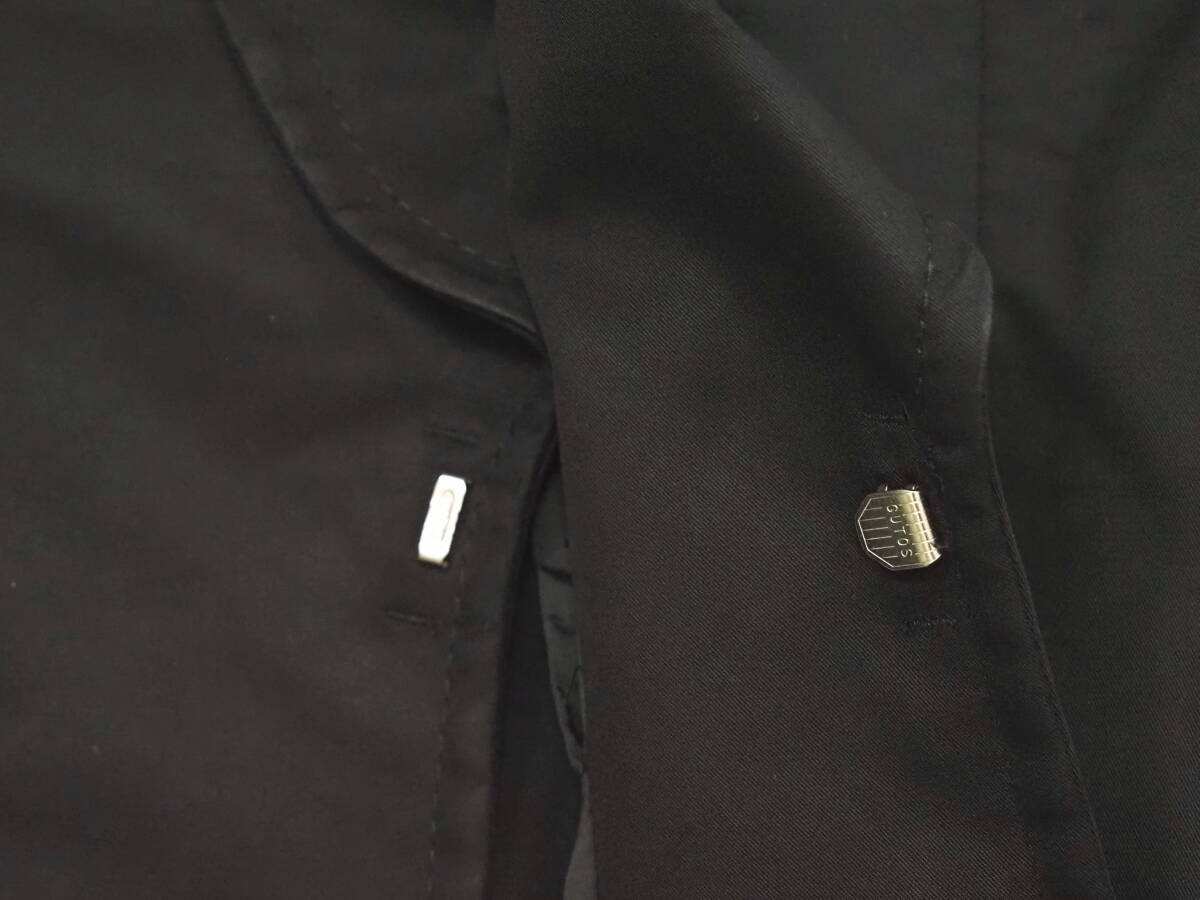 フロントはフックボタンで裏地は背抜き、サイドベンツ、袖はフックボタンで本切羽のつくりです。