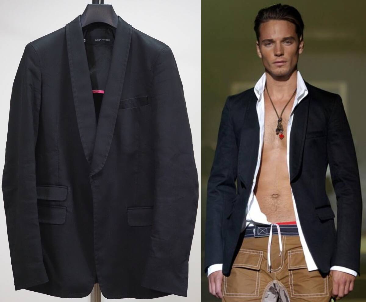 ヴィンテージ05SSアーカイブ DSQUARED2 ディースクエアード コットンショールジャケット46黒 Italy製