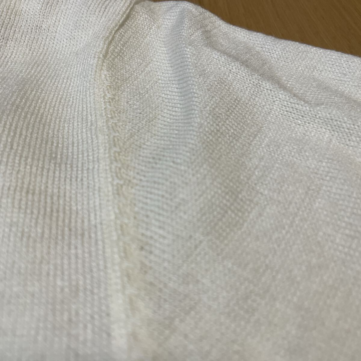プレーンな生成りのカラーは、どんなスーツやジャケットにも合わせやすく、ビジネスカジュアルから普段使いまで幅広く活躍します。