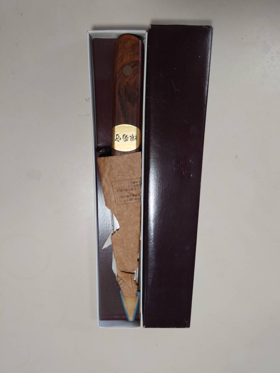 刃部分に錆び防止の為のフェロブライド紙が巻かれてましたが経年劣化で破れてます。