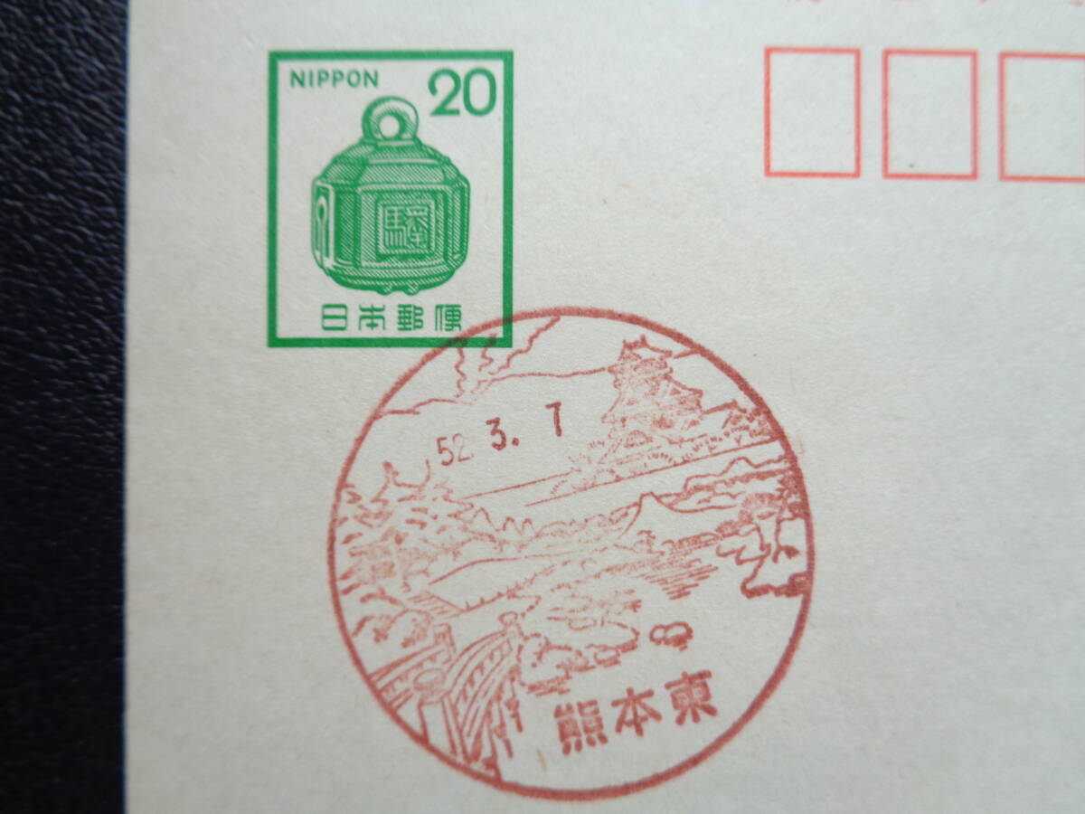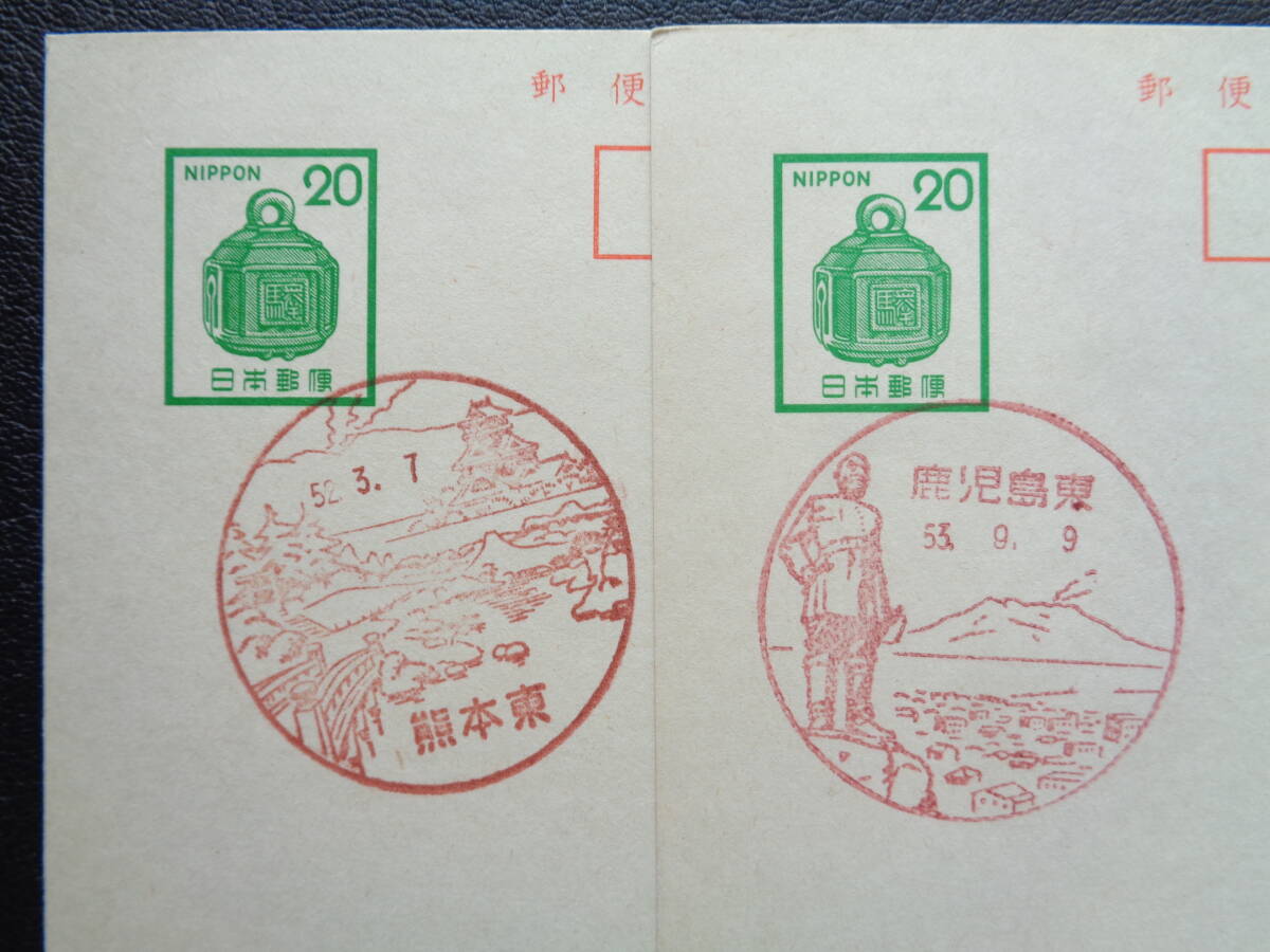駅鈴はがき    初日印/風景印    鹿児島・鹿児島東/S53.9.9   熊本・熊本東/S52.3.7