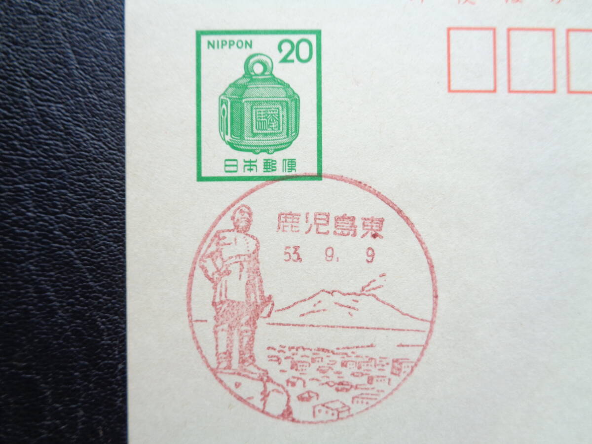 駅鈴はがき    初日印/風景印    鹿児島・鹿児島東/S53.9.9   熊本・熊本東/S52.3.7