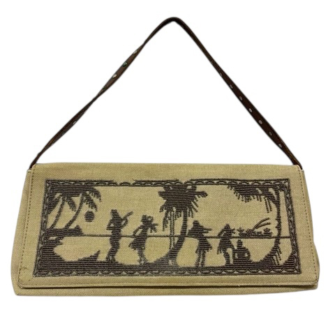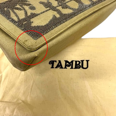 タンブー TAMBU ショルダーバッグ ハンドバッグ ワンハンドル 長方形 ビーズ 布地 キャンバス スタッズ フラップ 茶色 ブラウン レディース