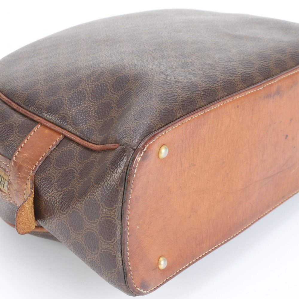 1円■美品■ヴィンテージ■セリーヌ■マカダム レザー トート バッグ 肩掛け ショルダー ハンド ブラウン 茶色 レディース RUE CU18-10