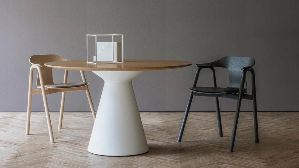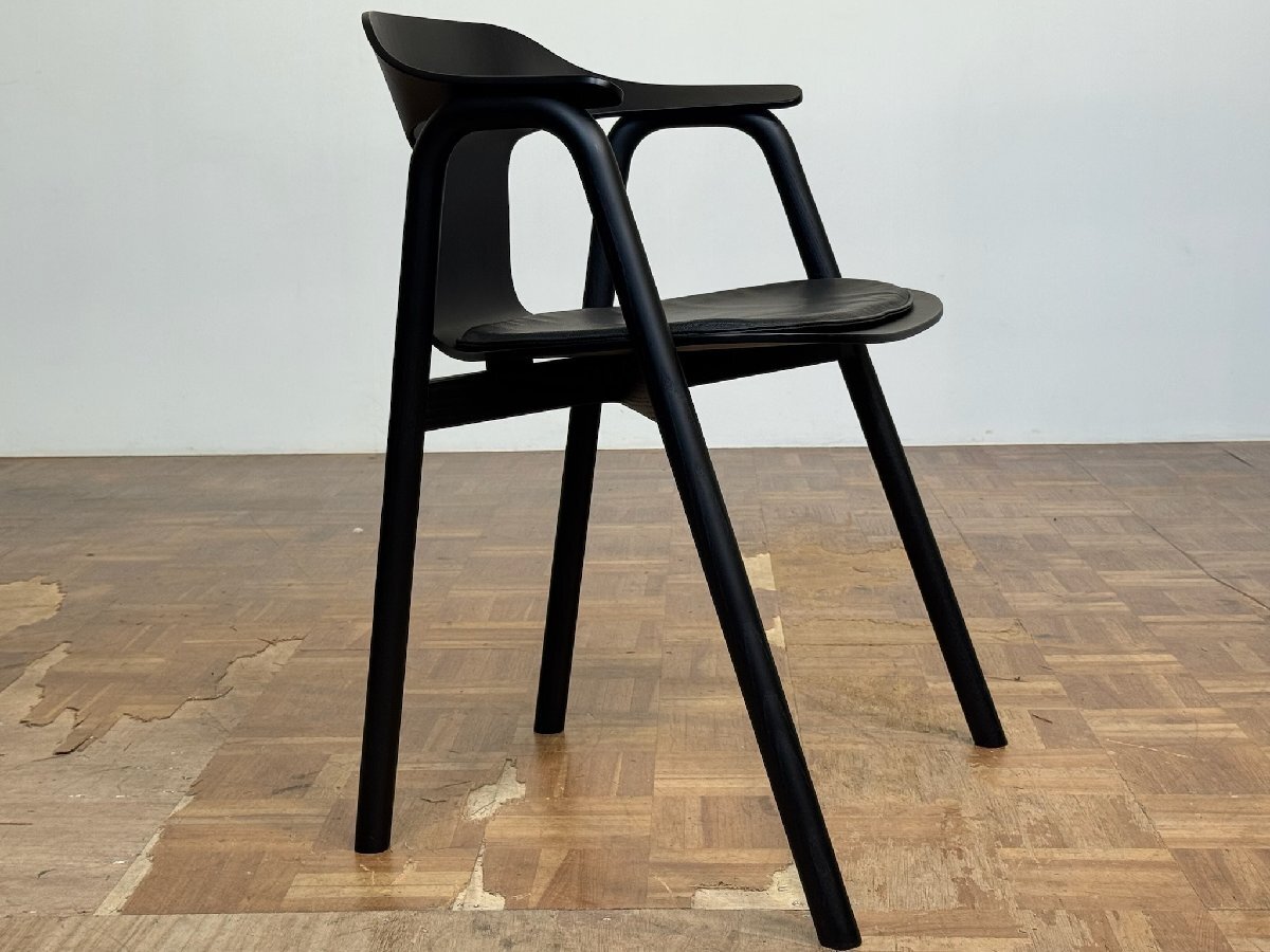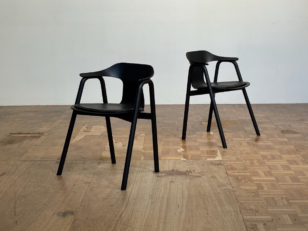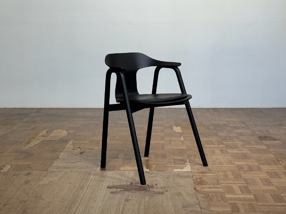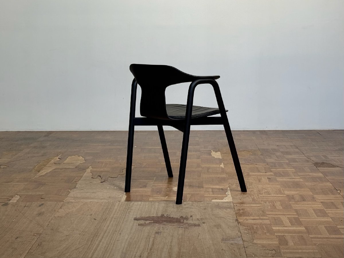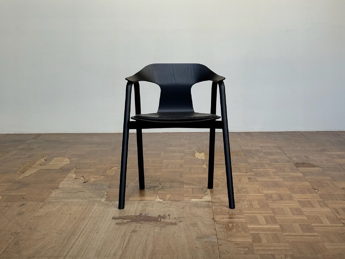 ノンテーパードの自由で伸びやかな曲線と直線のコントラストで凛とした佇まいを与えるフレームレッグスの曲げ木構成に、三次元曲面の軽やかでやわらかなシットポケットを組み合わせて、チェア全体が新しいデザイン解釈と洗練されたモダニズムの佇まいを帯びた、大セラーに君臨する名作アームダイニングチェア。arflex より。