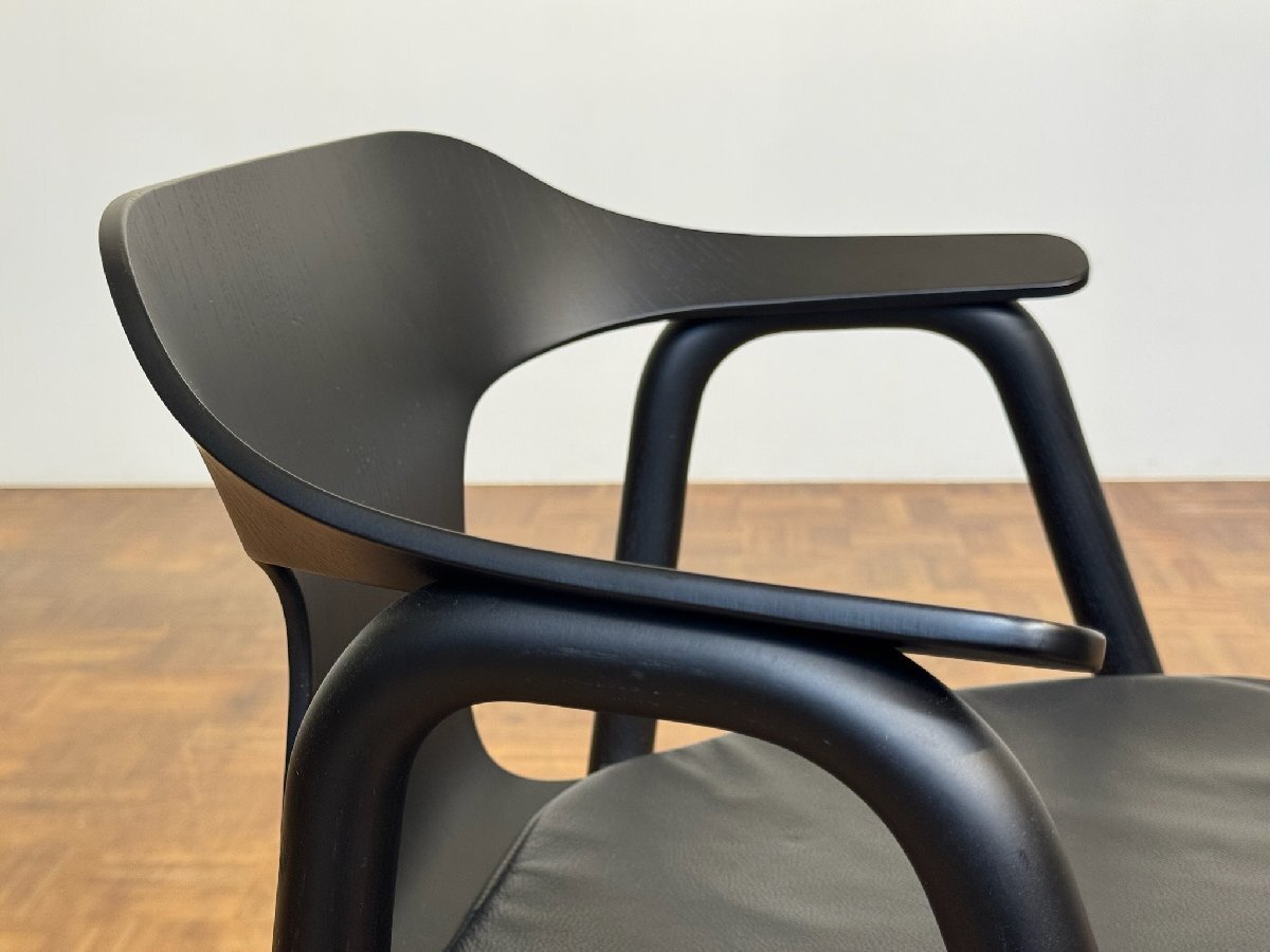 バックレスト / アームレスト / 座面を一体成形したエンジニアの粋の表現に、木工クラフツマンシップの表現である曲げ木のフレームを合わせることで、軽やかながら見応えあるデザインに仕上げられたデザインは、余裕ある静止眼と奇をてらうことのない、デザイン史のアーカイヴや自然からの着想に対する深い造詣の生み出す最高峰のデザインです。