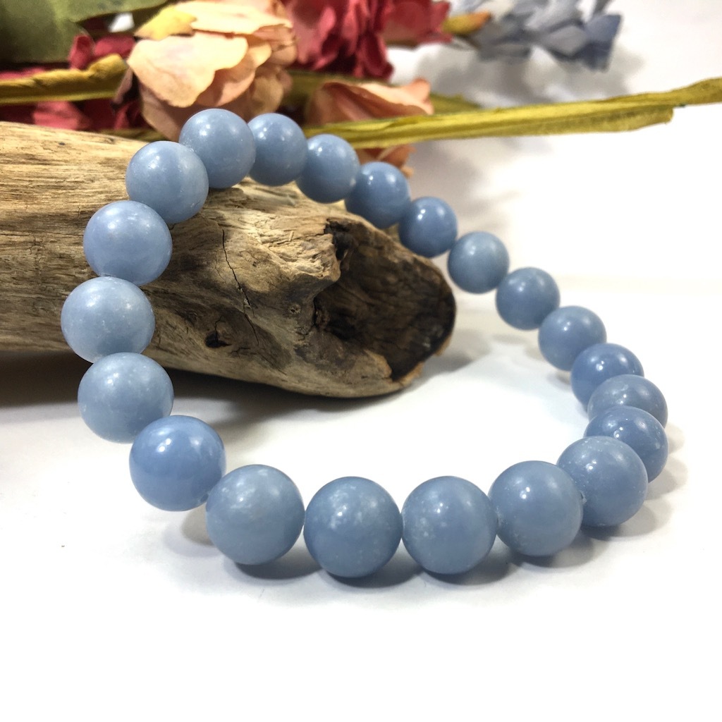 エンジェライトは非常に優しい力を持った石。人生において大切なものを気づかせ、そうした大切なものに対して広い愛の心を持つよう、持ち主を導いてくれると言われいます。