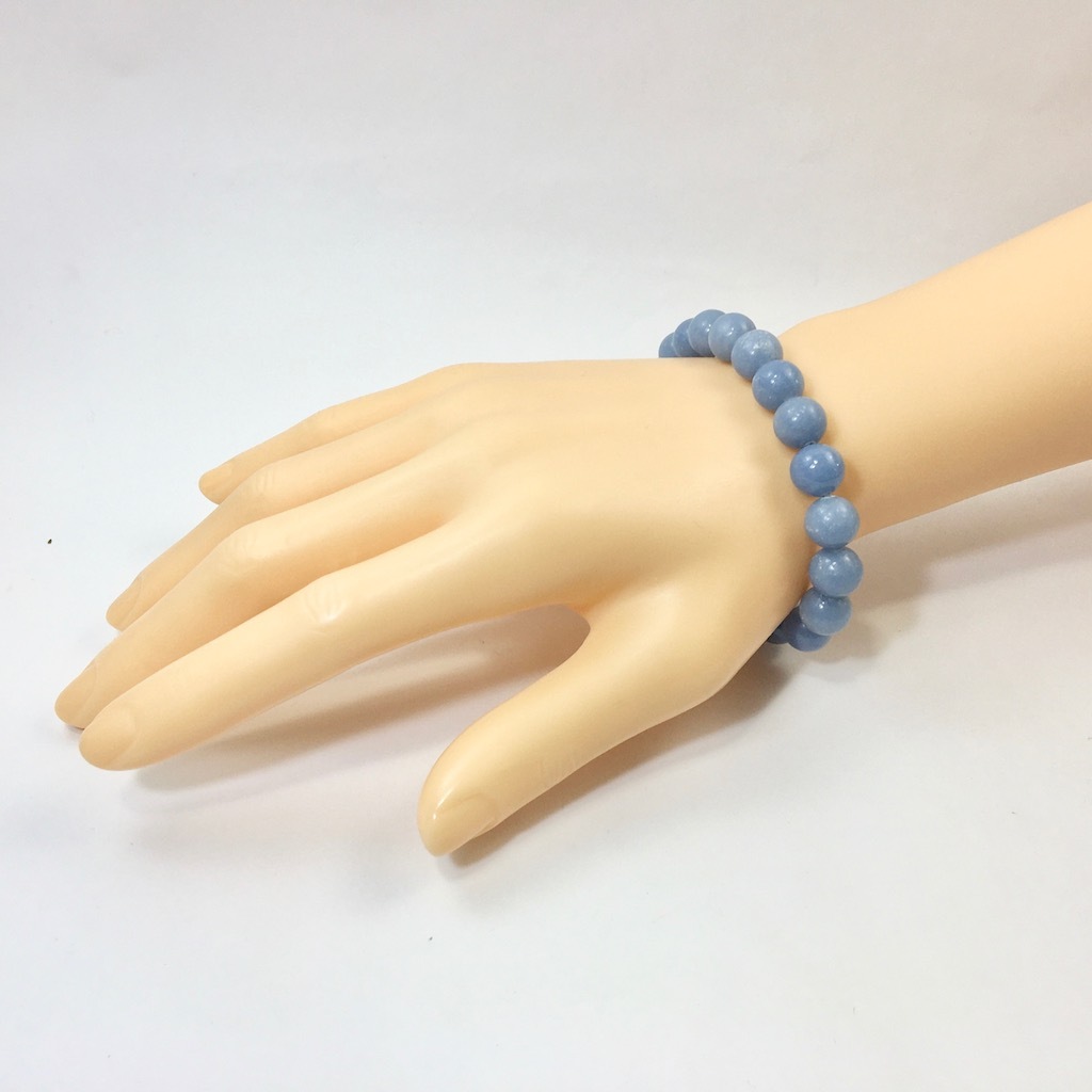 こちらは、エンジェライトの10mm玉を使用したパワーストーンブレスレットです。シンプルなデザインですのでどんなコーディネートとも合わせ易いブレスレットです。サイズは内径約17cmです。(サイズ変更の場合は取引ナビにてご連絡をお願いします。) 数に限りがございますので気になる方はお早めにどうぞ。