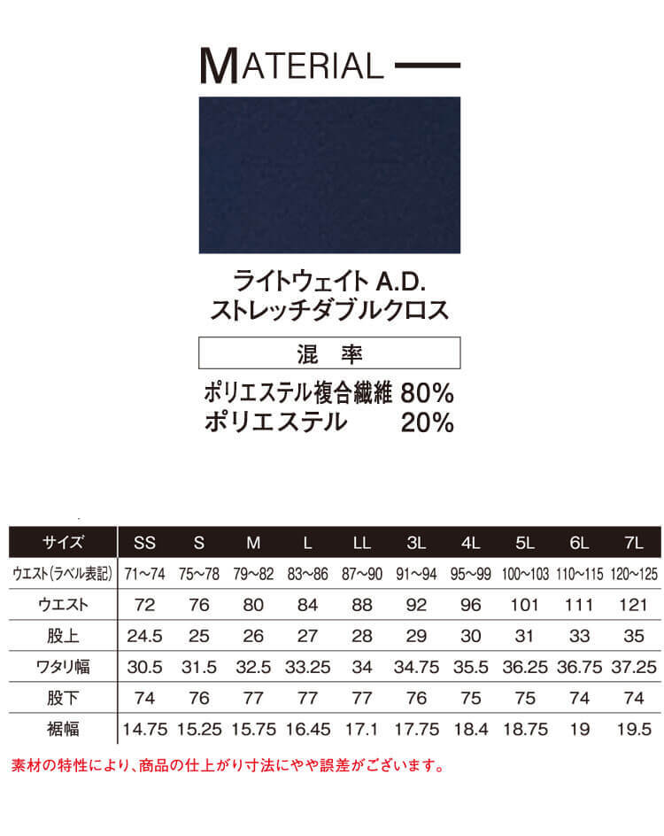 ・素材 : ライトウェイトA.D.ストレッチダブルクロス(日本製)