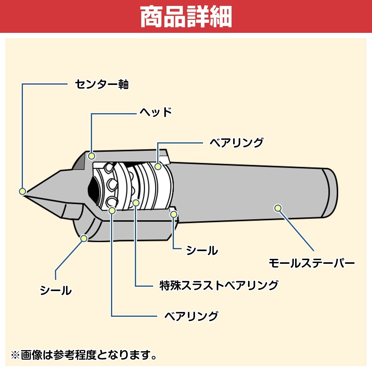 商 品 説 明切削加工時の摩擦を防ぐために使用する回転センターです。