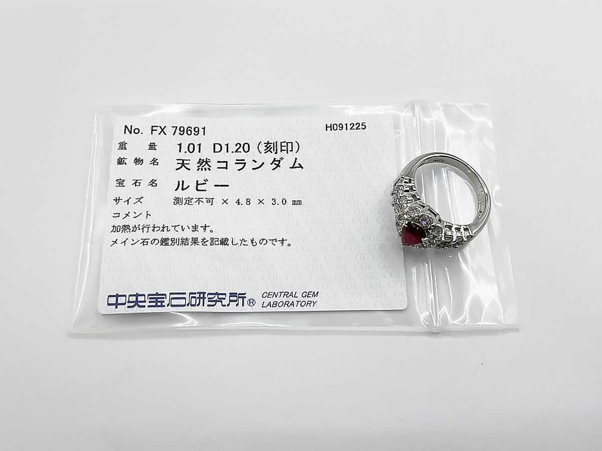 PT900・ルビー 1.01ct ダイヤモンド 1.2ct