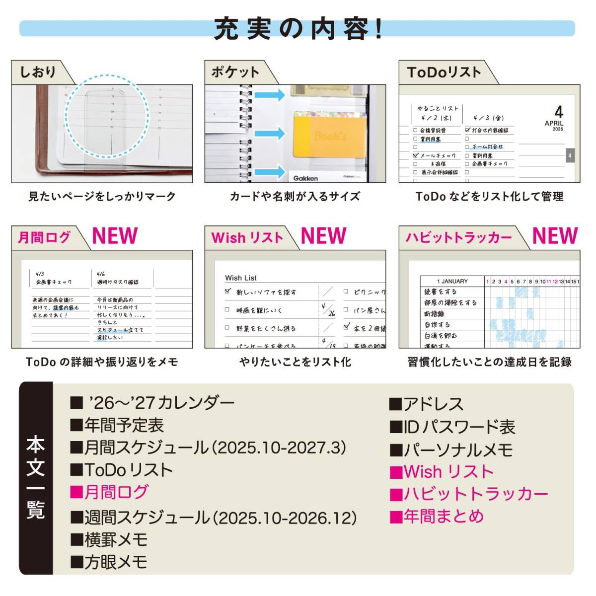 学研ステイフル 手帳 2026 スケジュール帳 ツイン手帳 A5 オークブラウン M16802 2025年 10月始まり