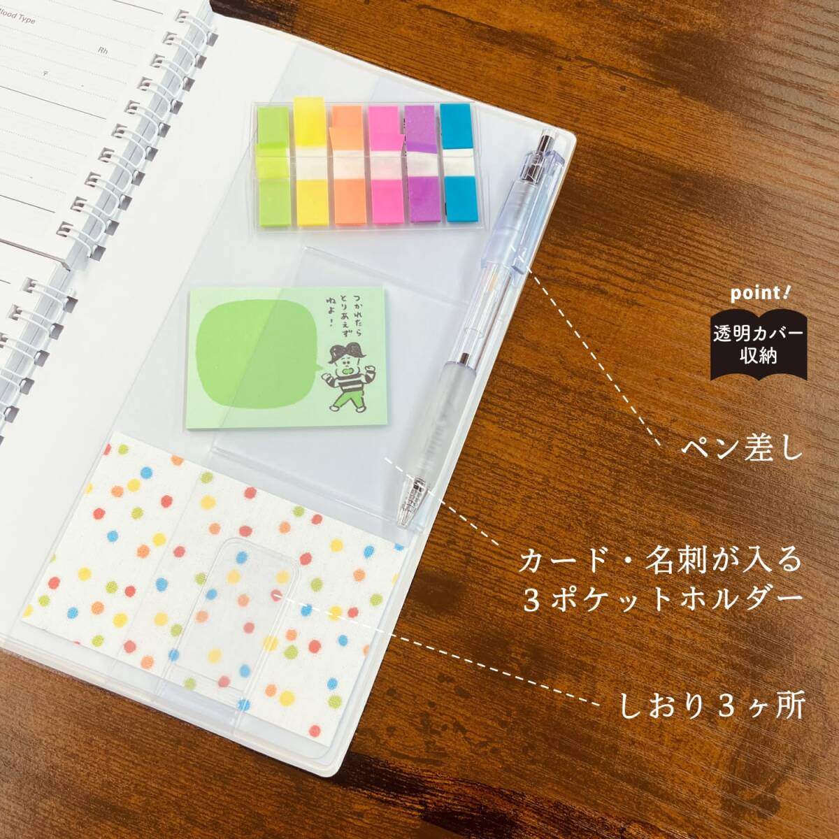 外側ポケットにはお気に入りの写真などを入れてカスタマイズしたり忘れがちなメモや書類を挟んだりするのも便利です。