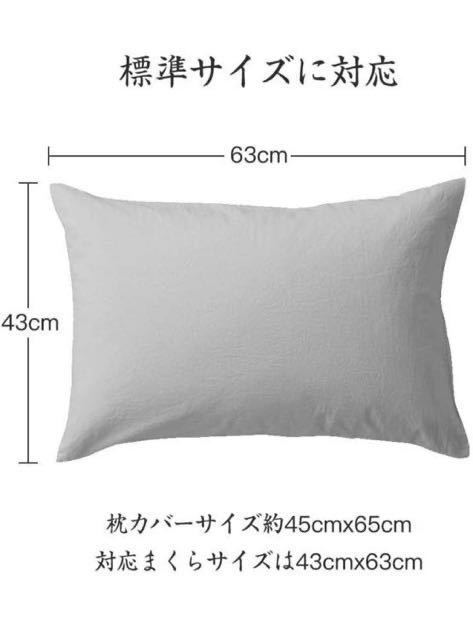 枕カバー 43×63cm 二枚セット ポリエステル100% ホテル品質 ピロー用枕カバー 封筒式 タオル地 四季適応 おしゃれ 柔らかい グレー