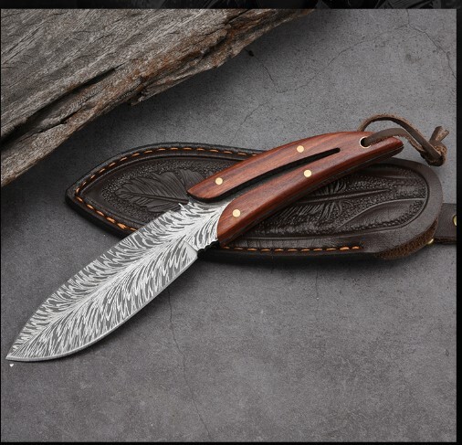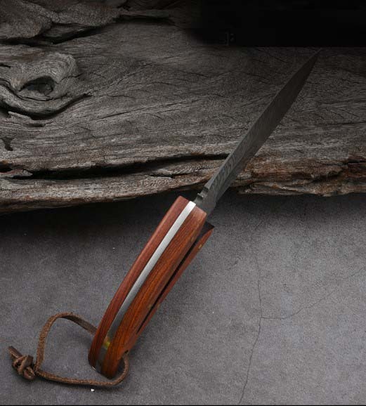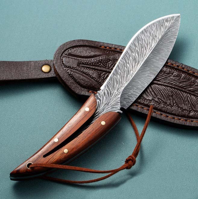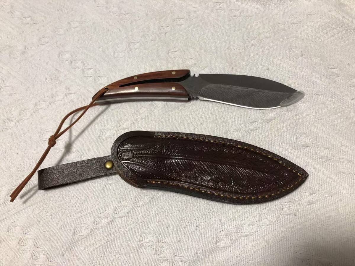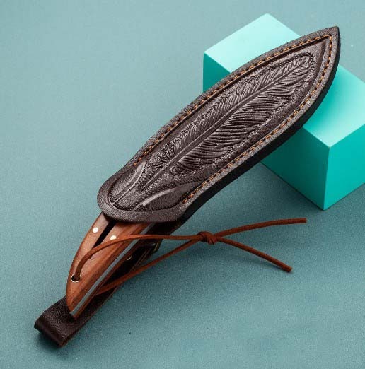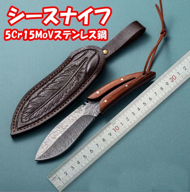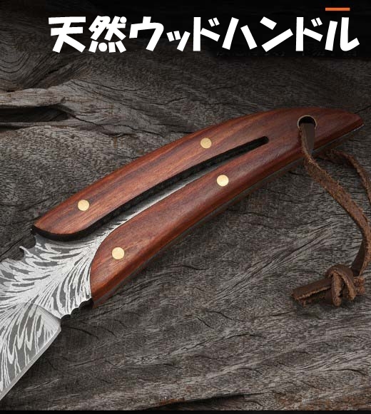 アウトドアナイフ シースナイフ フルタング構造 フィッシングナイフ 天然ウッドハンドル【高級鞘付き】LY9