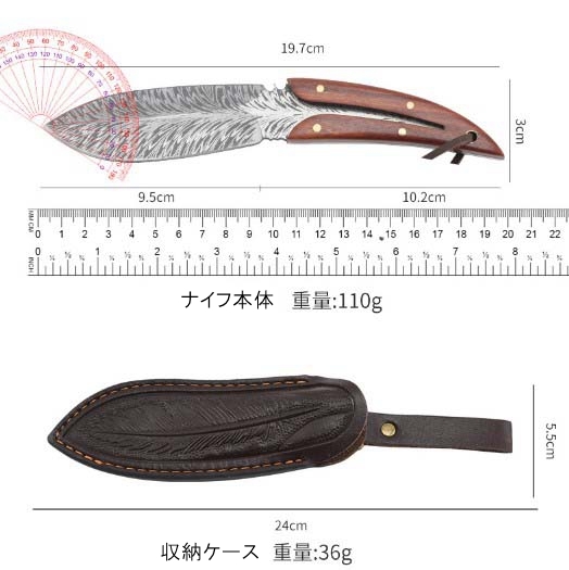 【仕様】ブレード材質:5Cr15MoVステンレス鋼 硬度:58HRC ハンドル材質:天然ウッド材 全長:約19㎝ 刃渡り:約9.5㎝ カラー:ブラウン