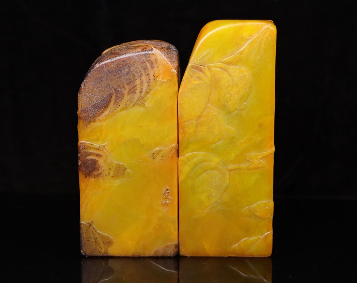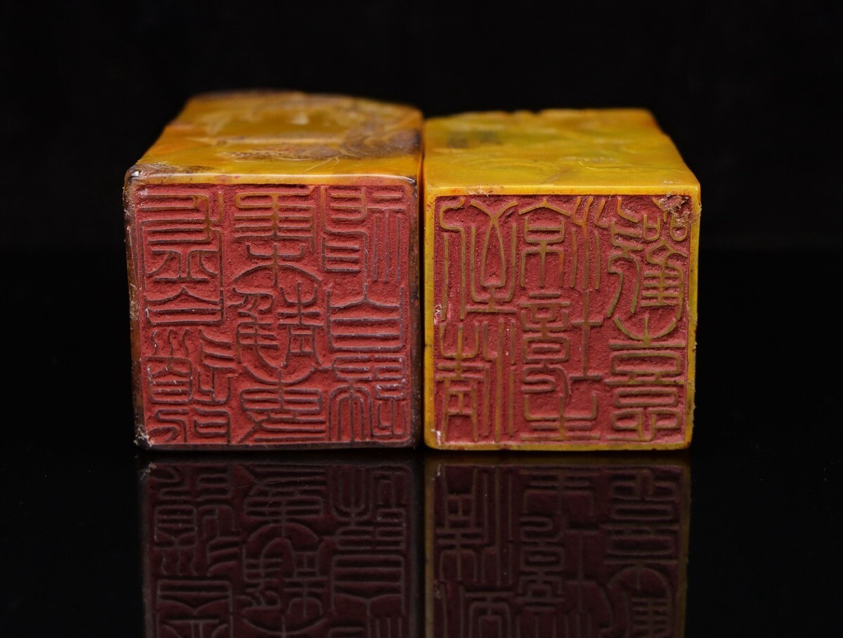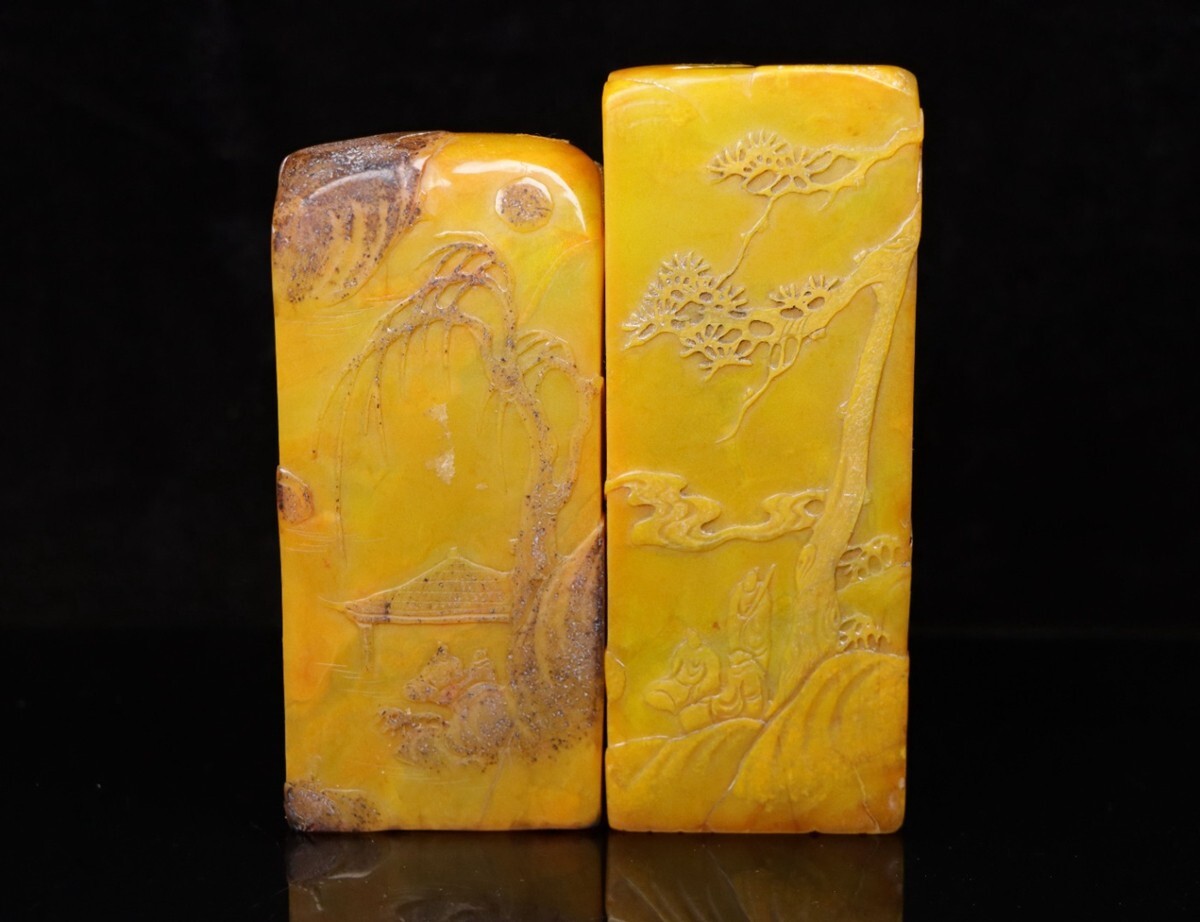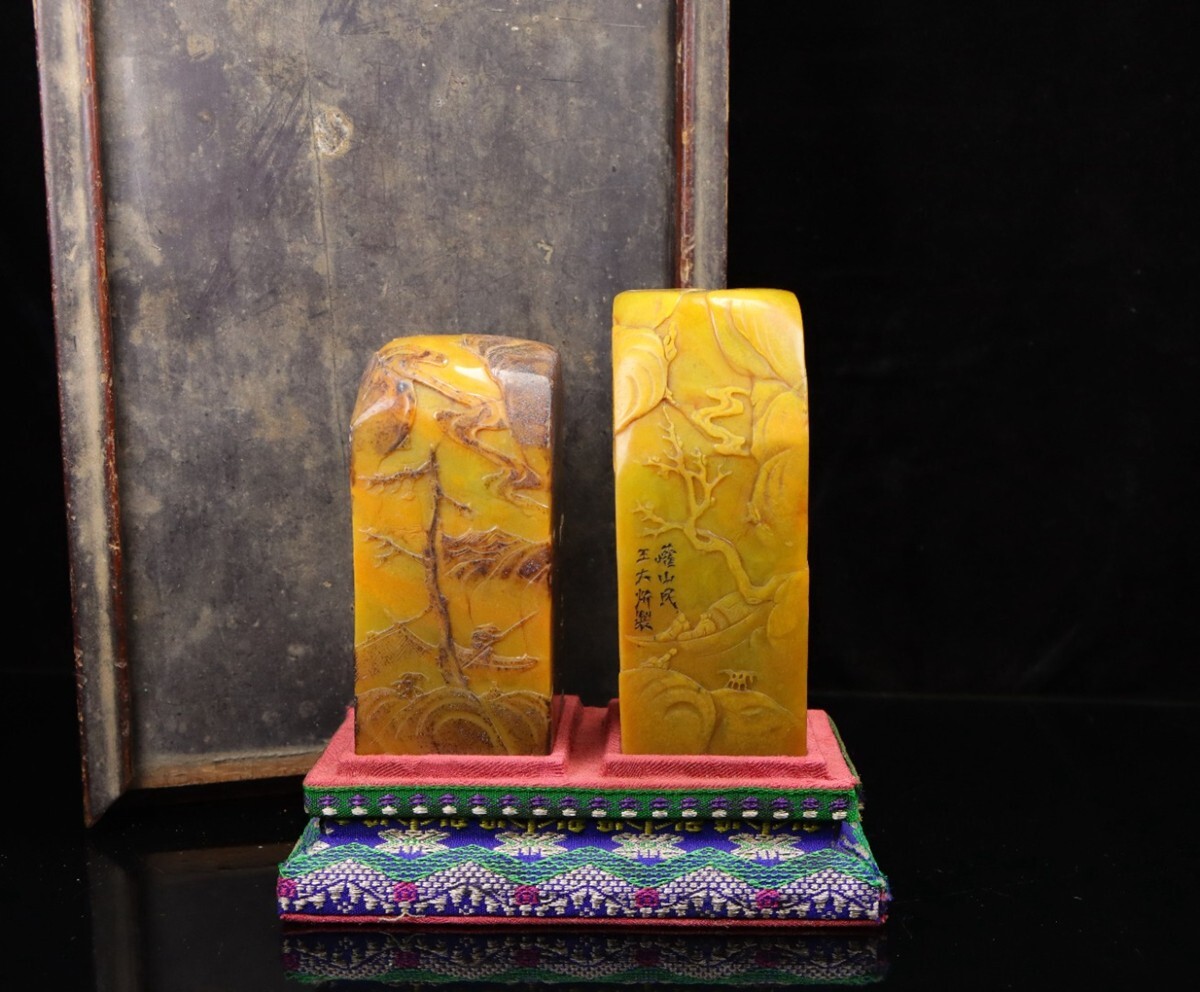 「清 王大きん 老寿山石 田黄石彫り 山水人物 閑章 印章」極細工 擺件 古賞物 中国古美術 旧蔵出