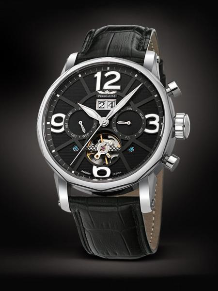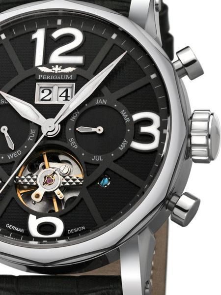 | 商品データ ●新品 品番:自動巻カレンダー P-1111-AS-W-Sle ●ドイツ製35石自動巻ムーブメント ●日付、曜日、月表示、小窓スケルトン、裏スケルトン ●2層黒色文字盤、夜光針とインデックス ●ケースサイズ:約46mm ●ケース厚:約15mm ●3ATM防水 ●ケース素材:ステンレス無垢 ●幅24mm高級純正レザーベルト(腕周り24.0cmまで) ●ミネラル 風防 ●包装ケース付 24ヶ月メーカー保証付き、取り扱い説明書(英独語のみ) その他の付属品はありません。 |