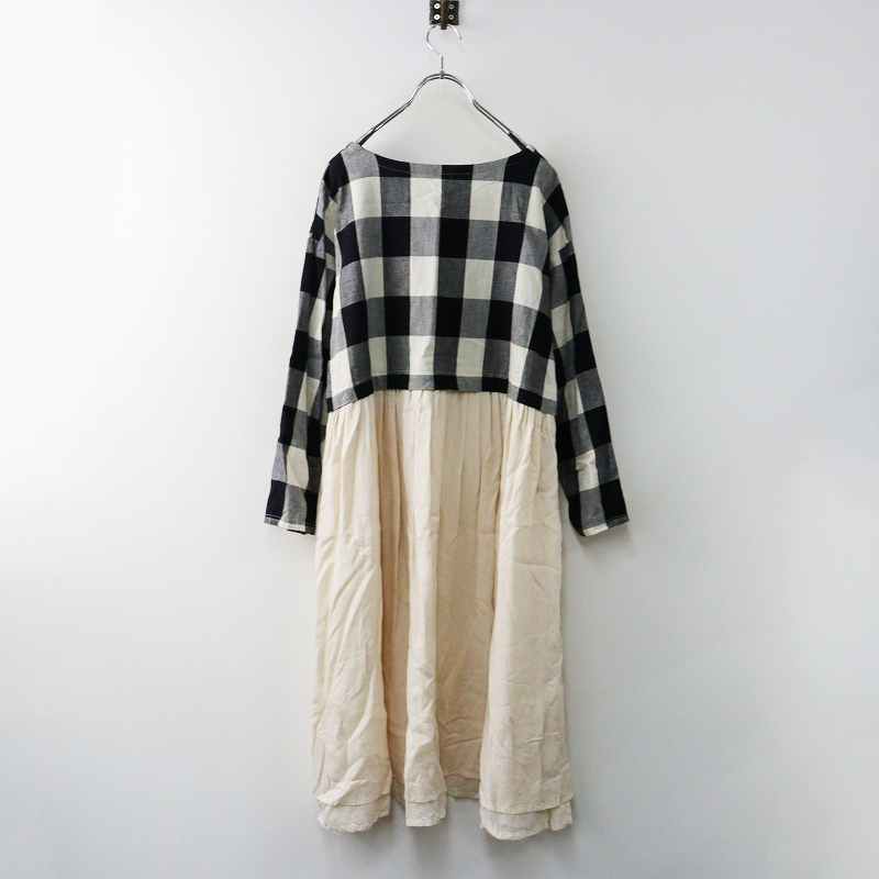 サマンサモスモス Samansa Mos2 SM2 ブロックチェック 切替ワンピース M‖ブラック×ライトベージュ ドレス ロング 【2400014626438】