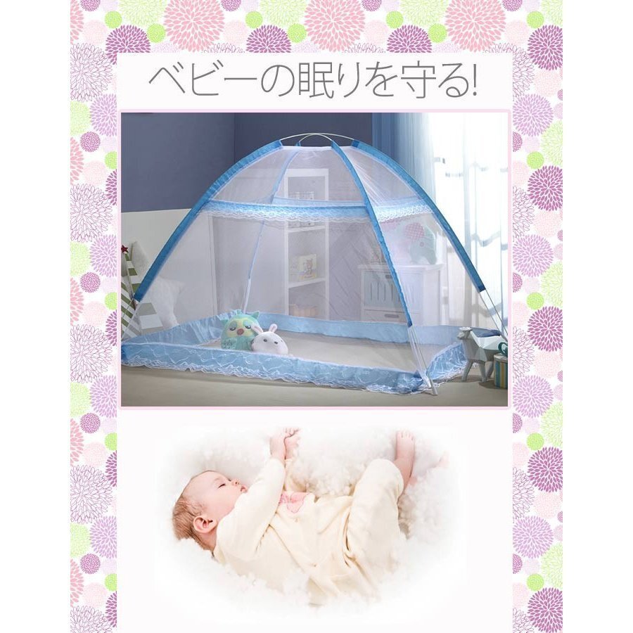 ( お昼寝 蚊帳 ブルー ピンク 赤ちゃん ベビー ベッド ワンタッチ コンパクト 軽量 かや 寝具 害虫 日よけ )