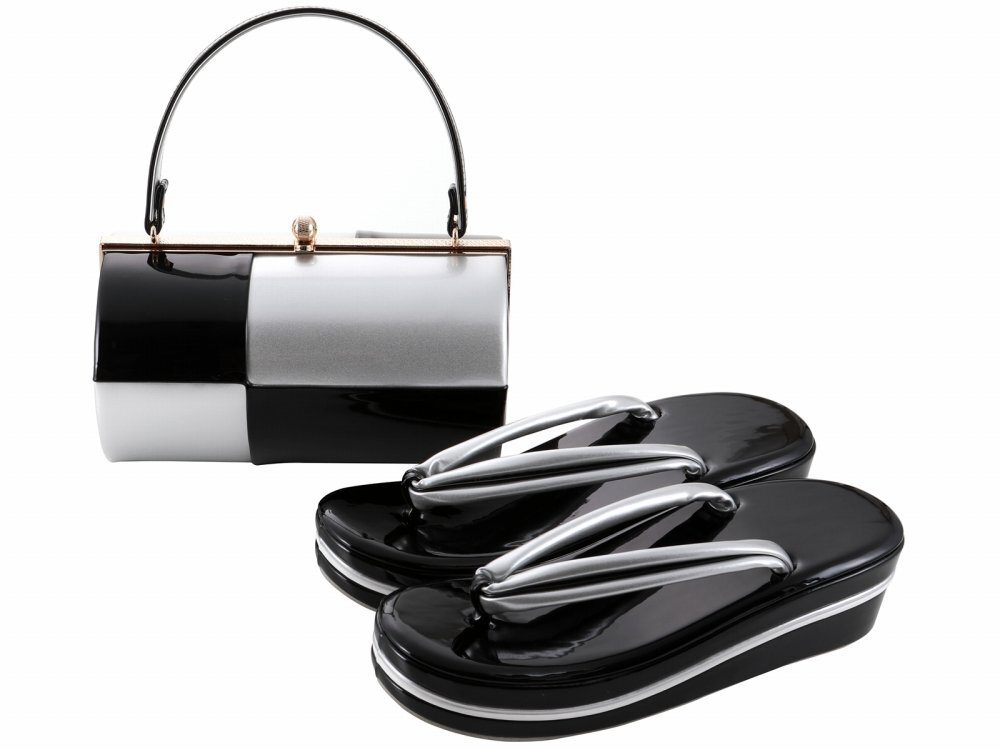 ◆振袖用◆草履バッグセット エナメル 二枚芯 bs-376-1 (フリーサイズ) 【振袖 成人式 結婚式 卒業式 フォーマル ぞうり 】