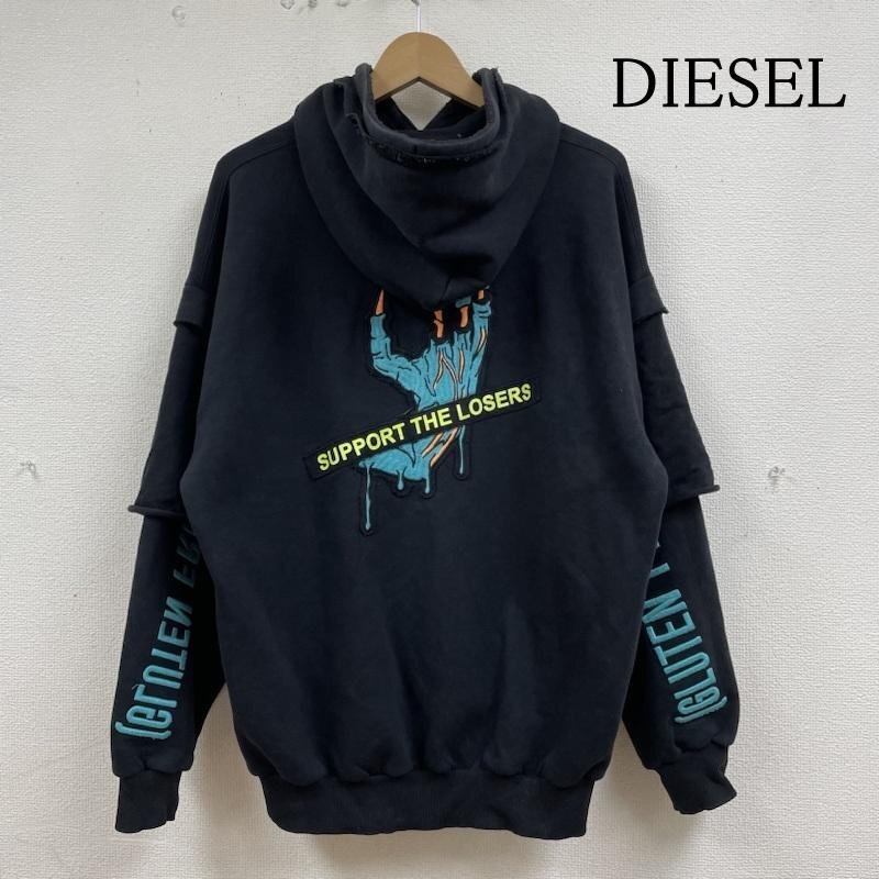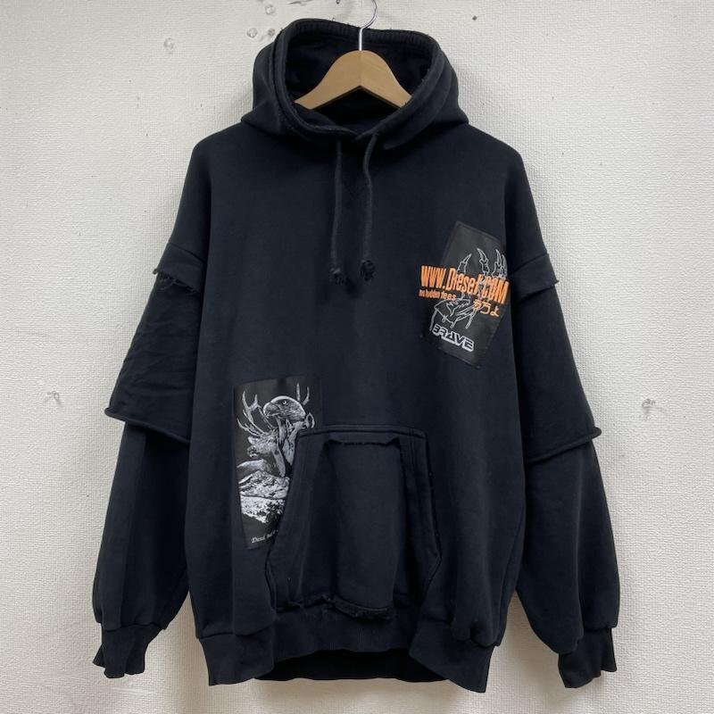 ディーゼル S-UBBER 長袖 パーカー プルオーバー ロゴ 刺繍 パッチ エンブロイダリー ダブルレイヤー A01804-0KAZW S