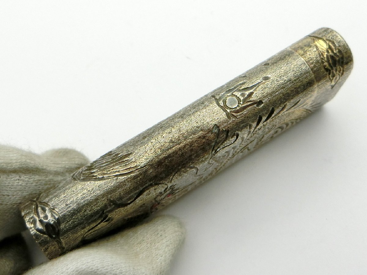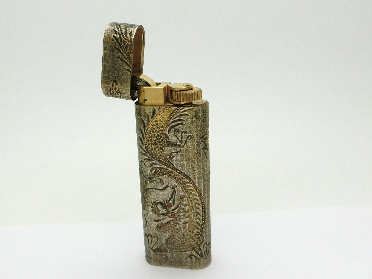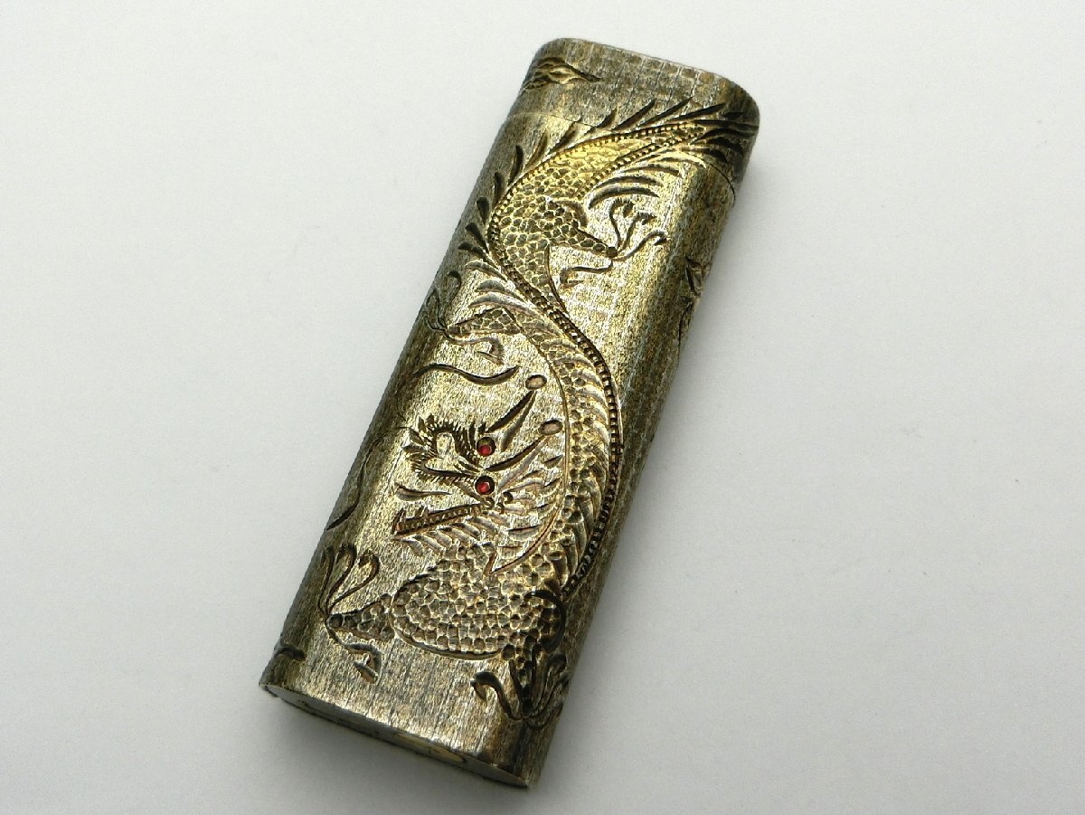 ガスライター Roy King ロイキング 龍 竜 シルバー オーバル 楕円形 着火未確認 喫煙グッズ 底フタ固着有 1円~ N0228c
