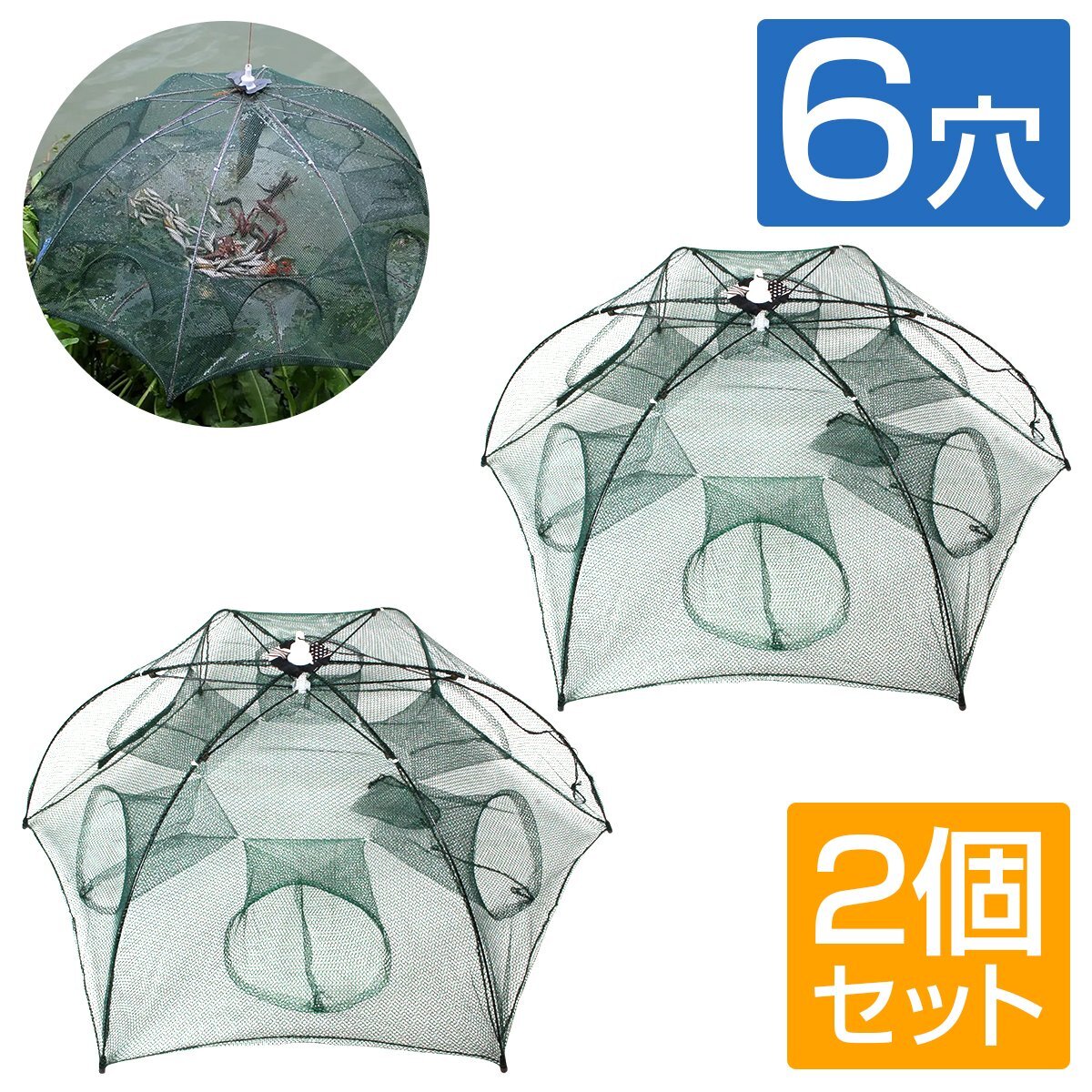 (Ssiz) 2個set 6穴 仕掛け網 タコ ウナギ アナゴ エビ カニ 狙い 捕獲網 六ツ手網 六角網 収納 折り畳み式 穴子 魚網 漁具