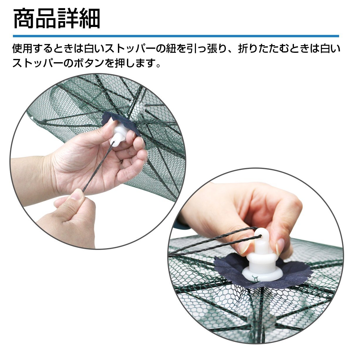 商 品 説 明傘型の袋状の網の中に餌でカニ・エビなどをおびき寄せ網の中に閉じ込めます!