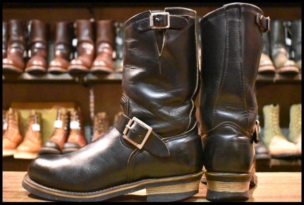 【9D 良品 PT91刺繍】レッドウィング 2268 エンジニア 黒 ブラッククローム スチールトゥ プルオン ブーツ redwing HOPESMORE