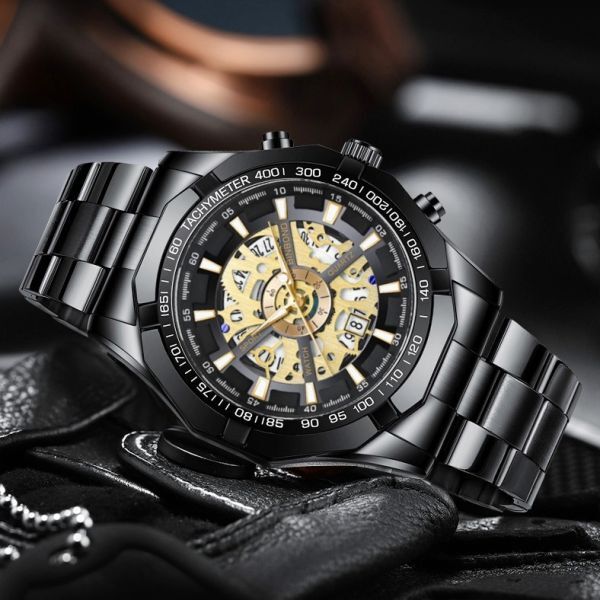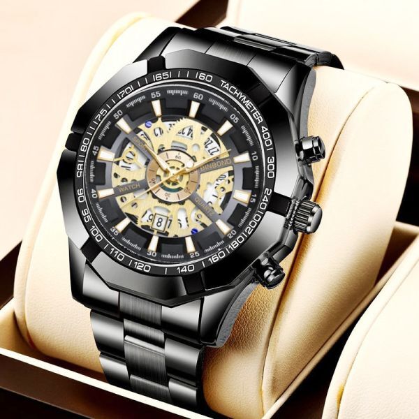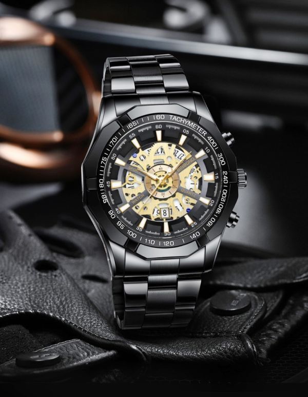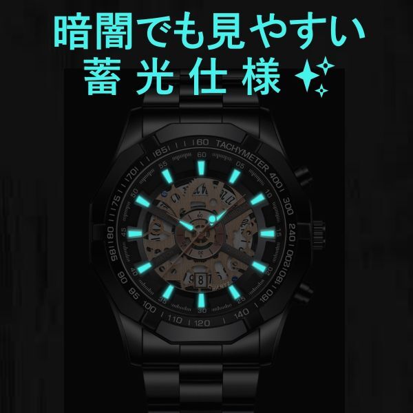 【新品】 メンズ腕時計 防水 耐衝撃 ステンレス ウォッチ アナログ ビジネス ブラック デイト表示 T05 1円BK