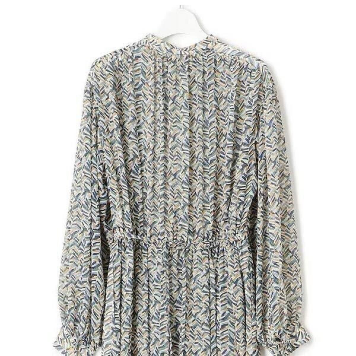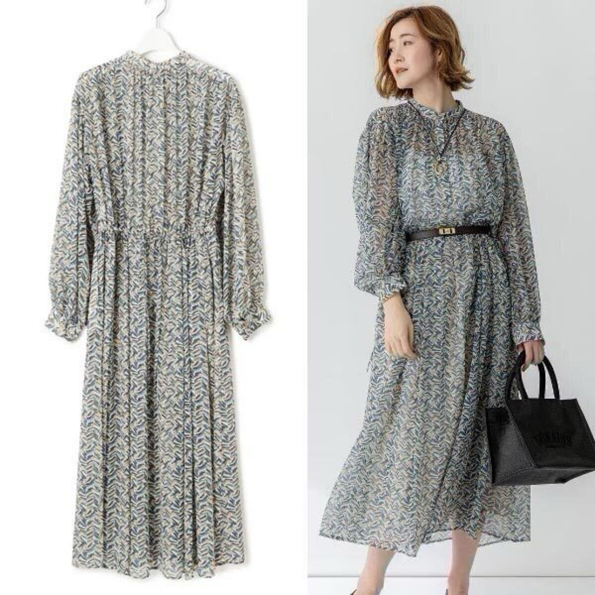 23区【洗える】シアーヘリンボーンプリント ワンピース Mサイズ・38・青系・新品