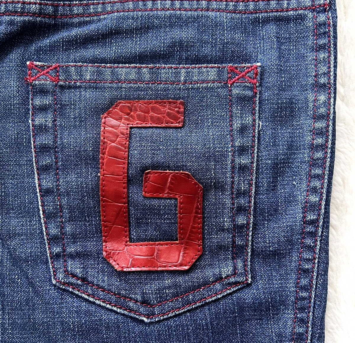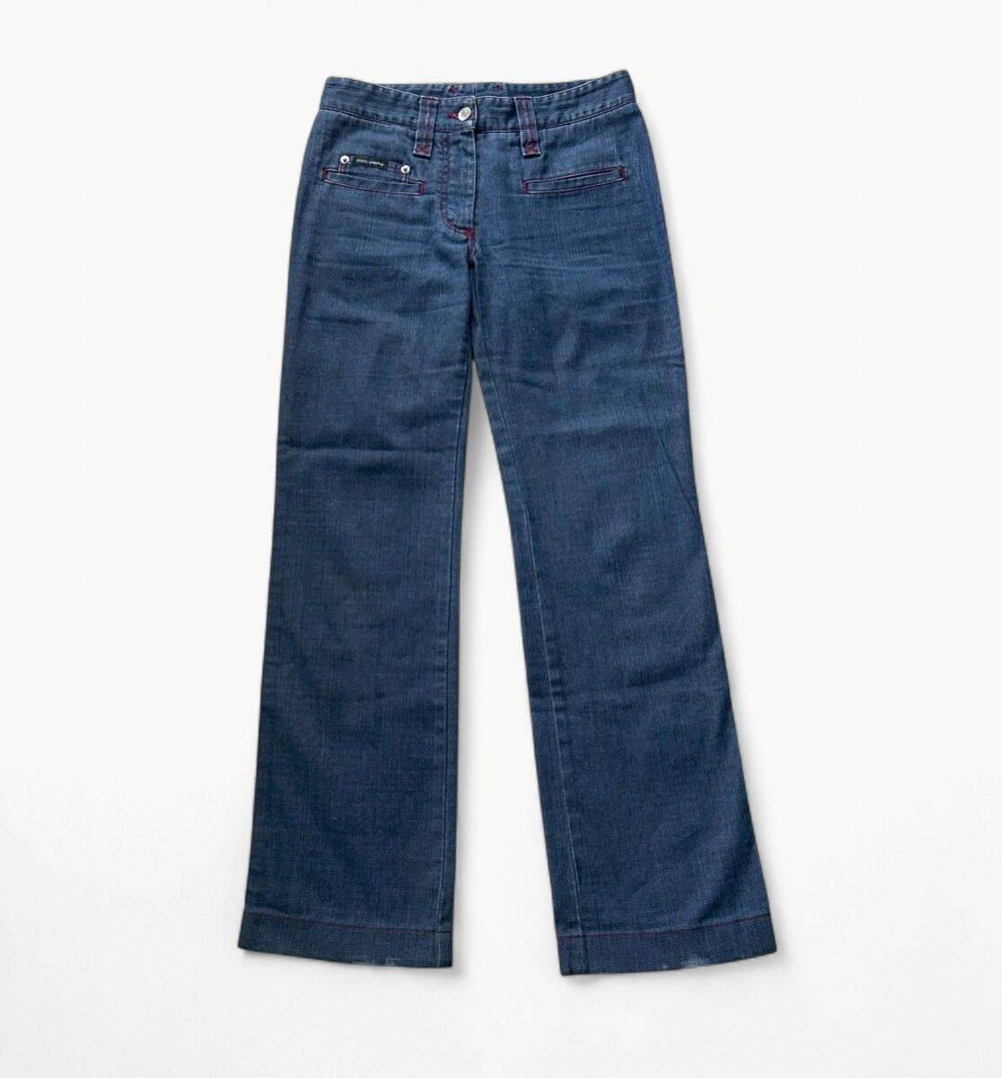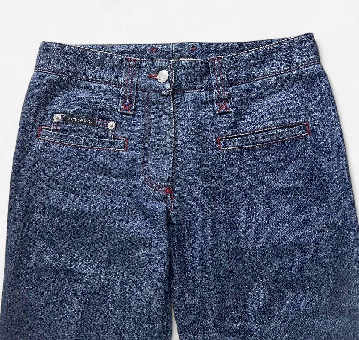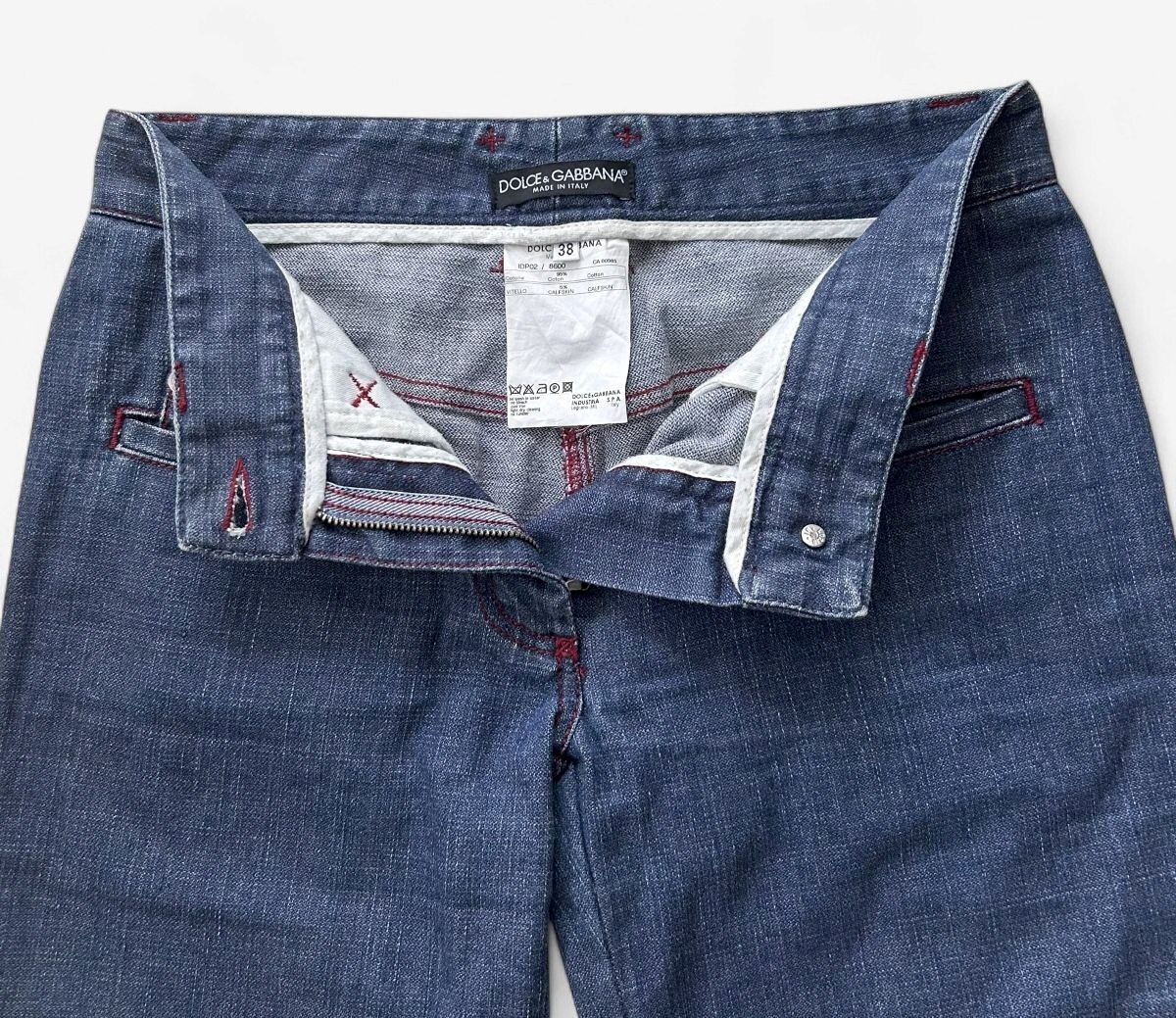 デニム地にレッドのステッチ、レッドの革パッチがお洒落な配色で、一目でドルガバと分かるデザインです。