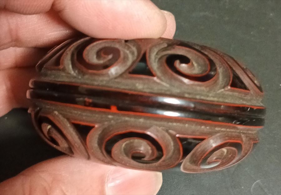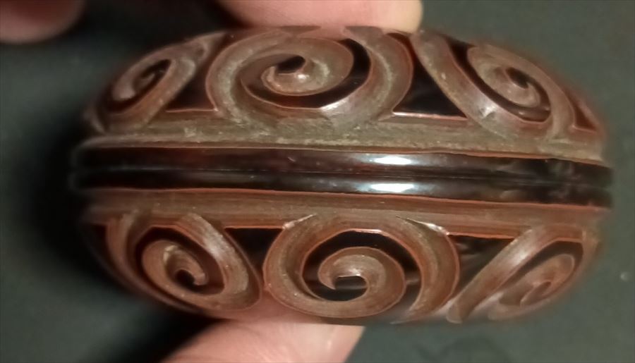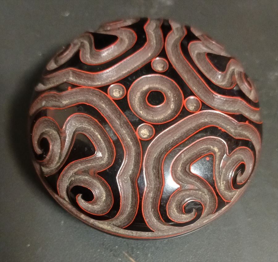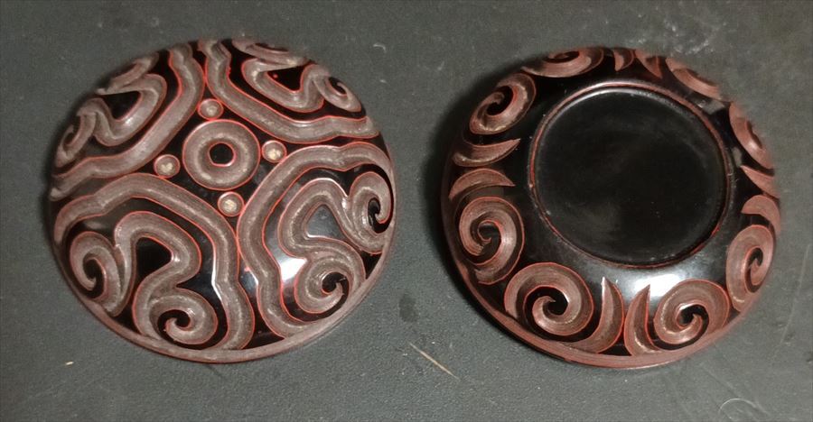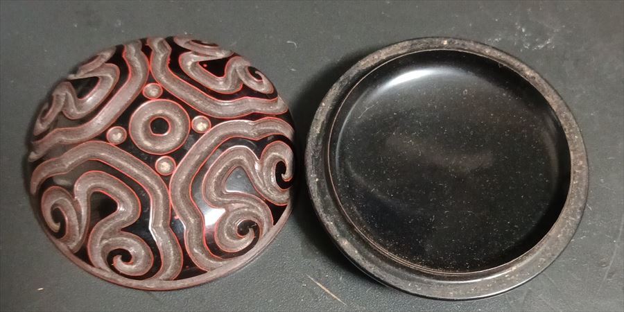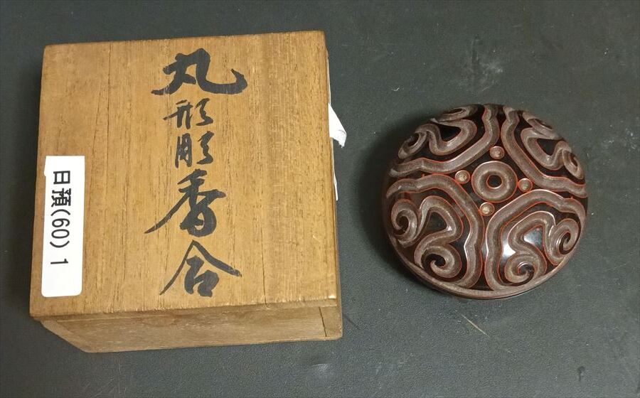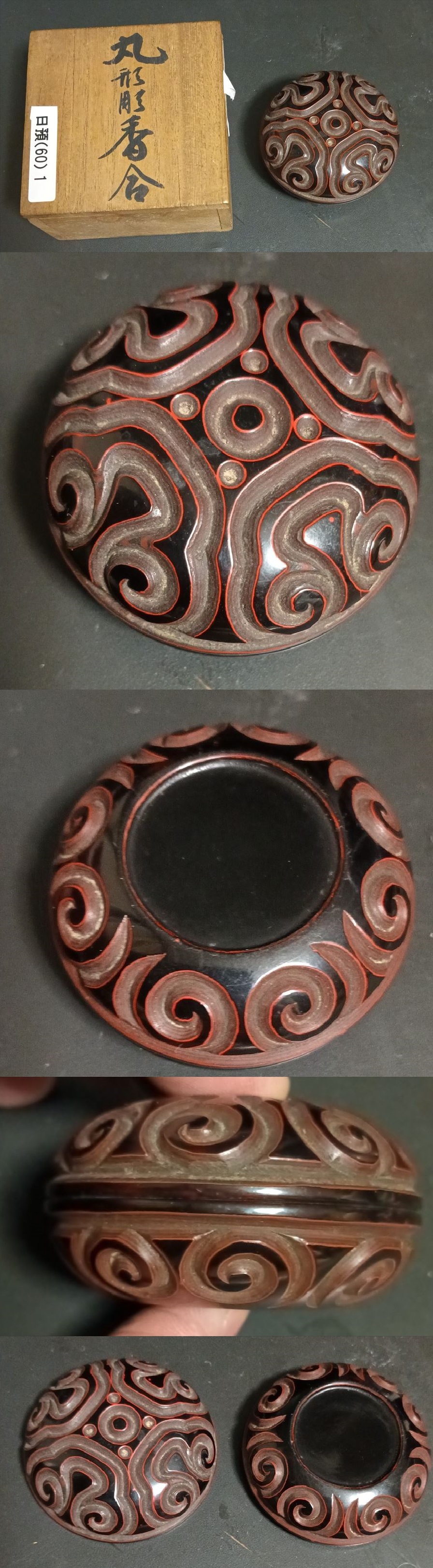 中国古玩 明代 唐物 彫漆 具利 堆朱 堆黒 屈輪 香合 共箱 茶入 漆 堆朱 細密彫刻 清朝 明 唐物 骨董 古物