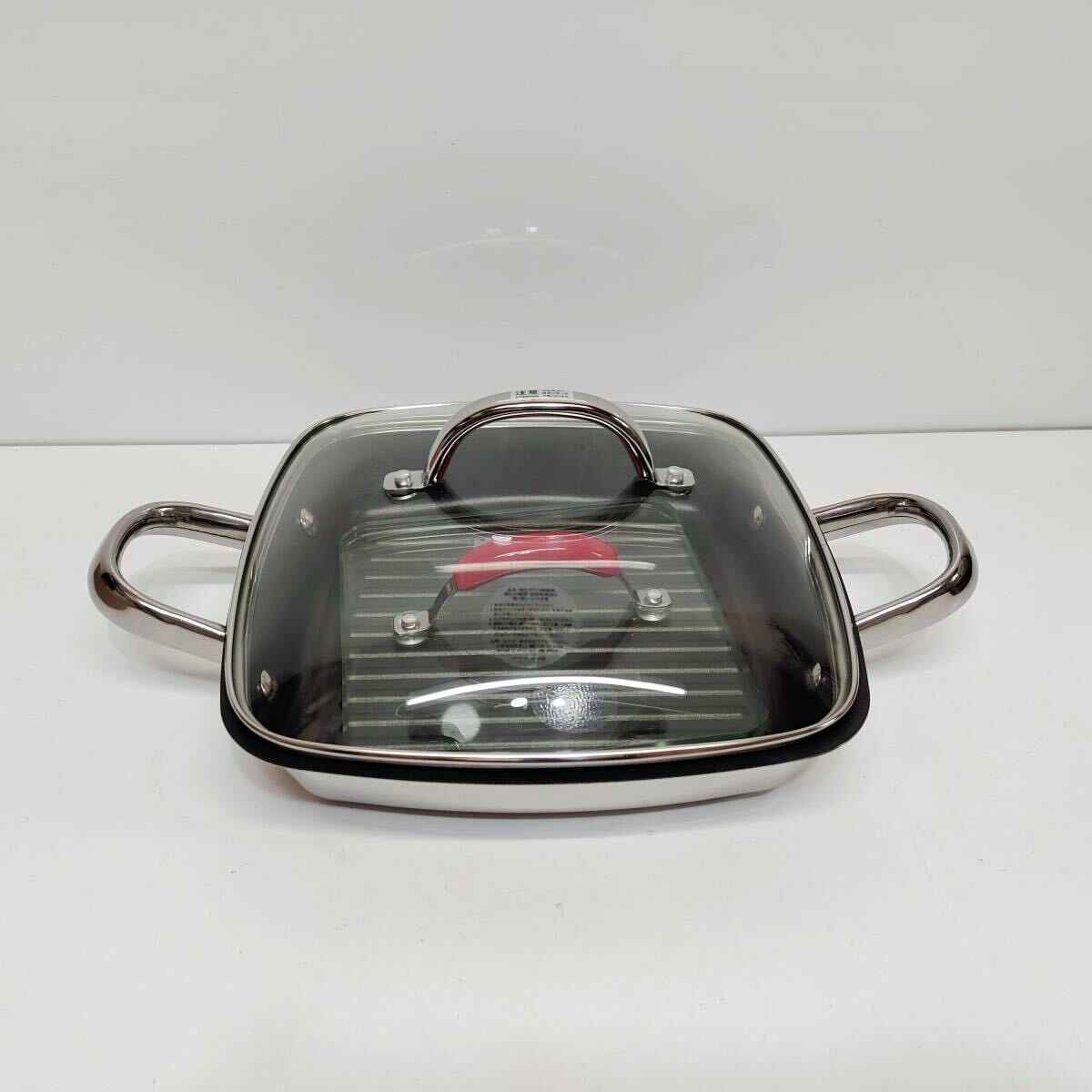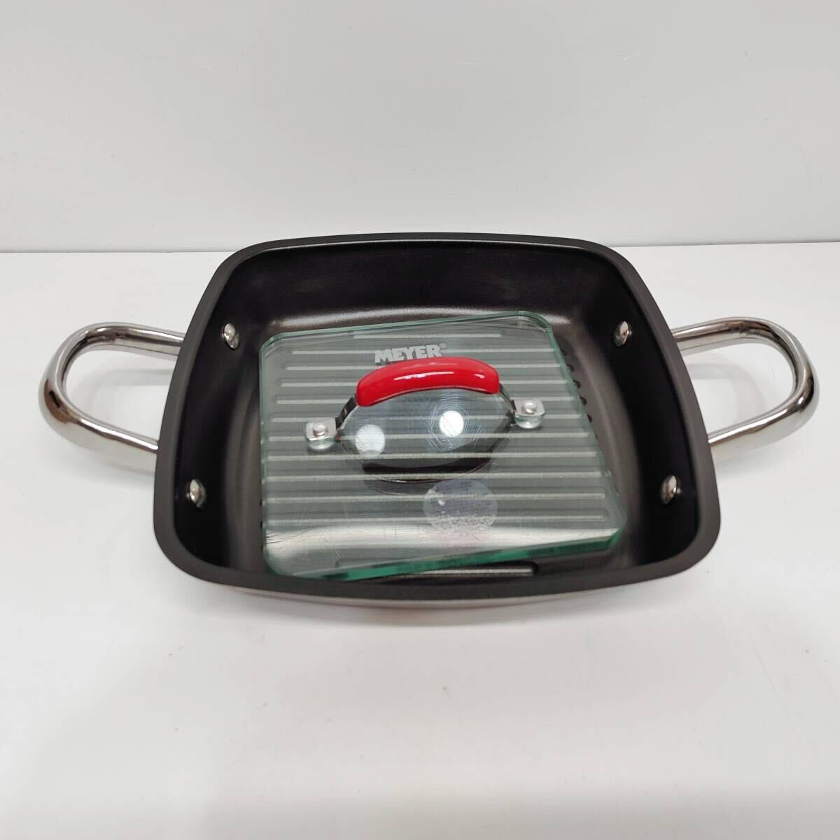 ●美品 マイヤー スクエア グリルパン24cm MEYER ガラス製ふた グリルプレス付き 両手鍋 L1687