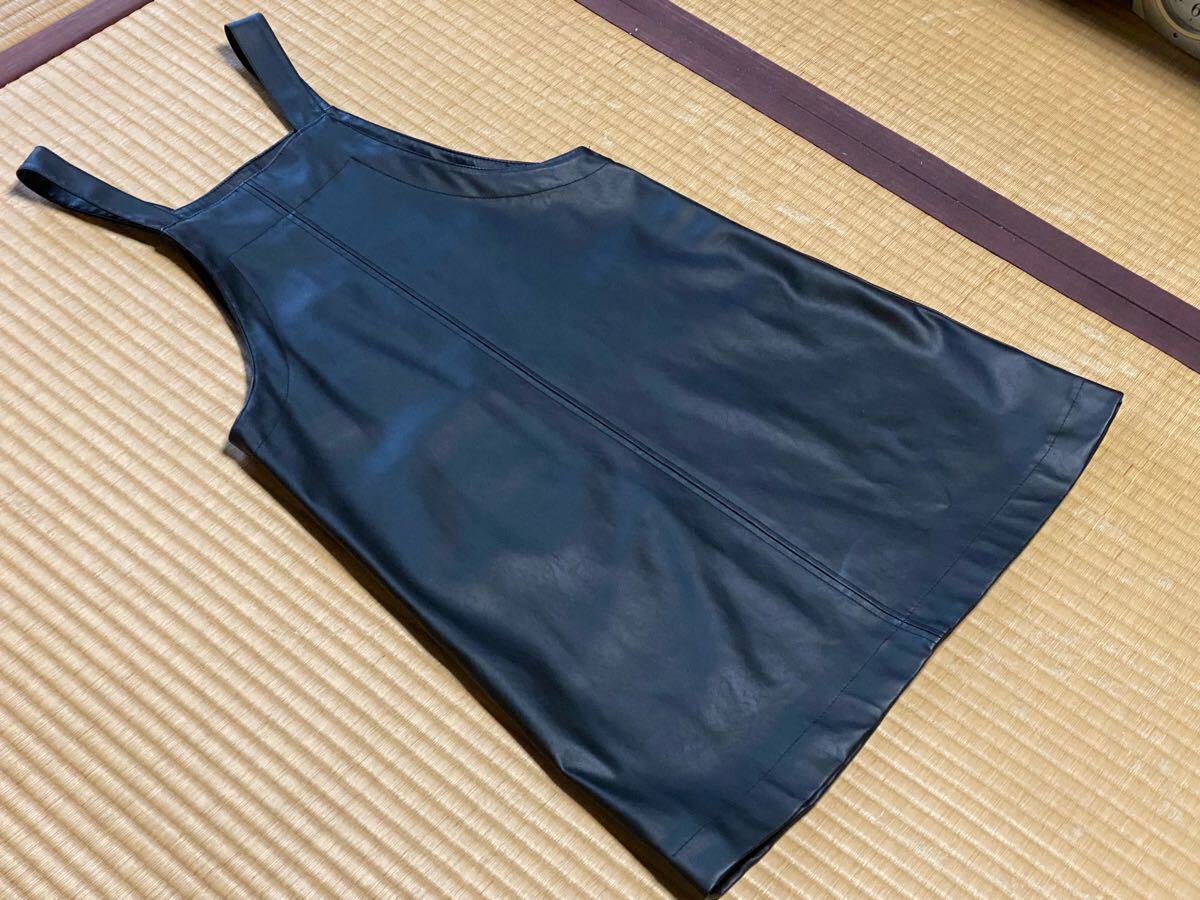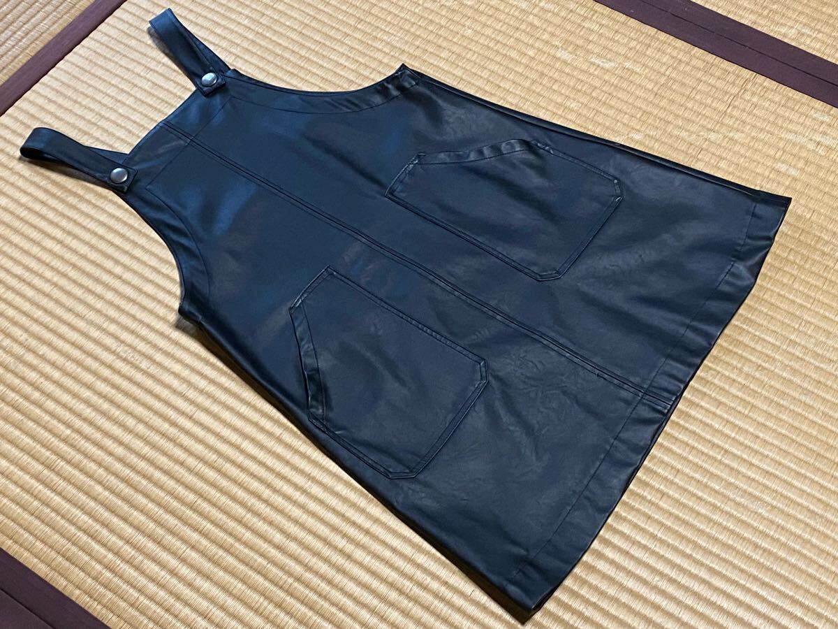 ZARA★キッズ サロペットスカート 黒 合成皮革 大ポケット付き★サイズ11〜12・152㎝(小柄な方利用可能SかXS位)