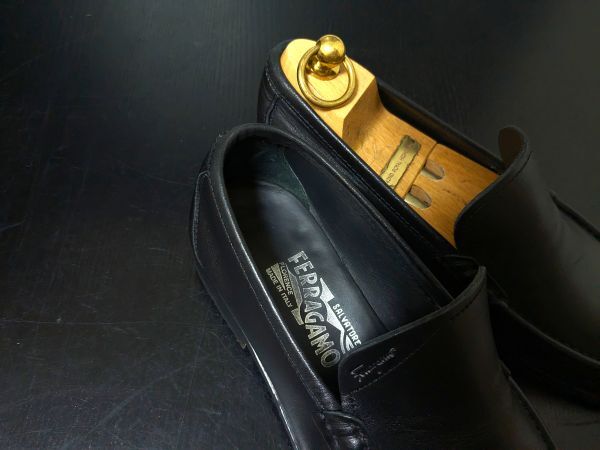 使用少 フェラガモ 6.5EE Ferragamo シンプル ソフトドレススリッポン ローファー 黒
