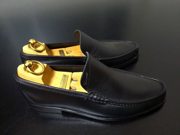 使用少 フェラガモ 6.5EE Ferragamo シンプル ソフトドレススリッポン ローファー 黒 850