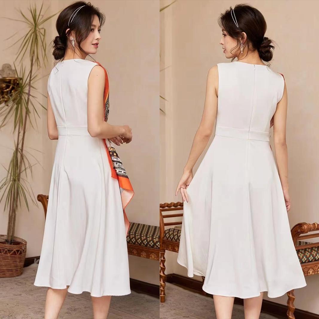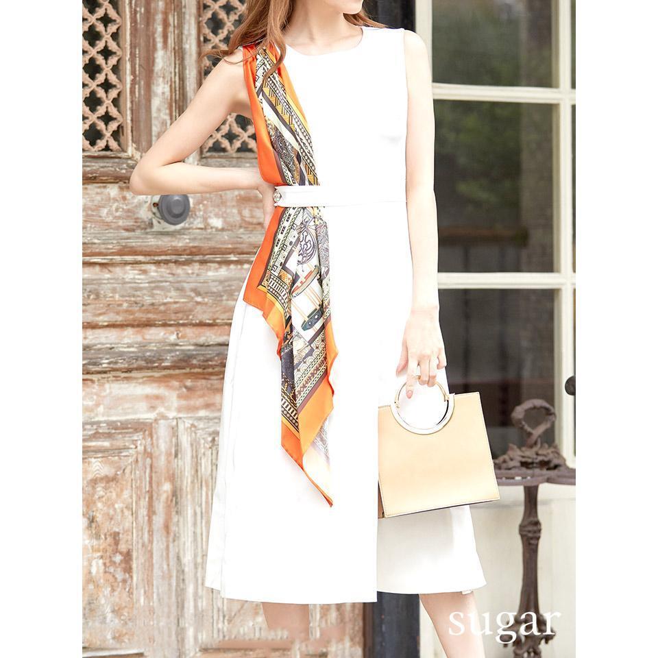 スカーフデザインが目を惹くミディアムワンピースドレス