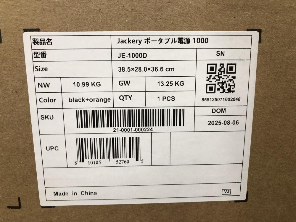 Jackery ジャックリー ■商品名 ポータブル電源 ■型番 JE-1000D |