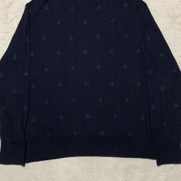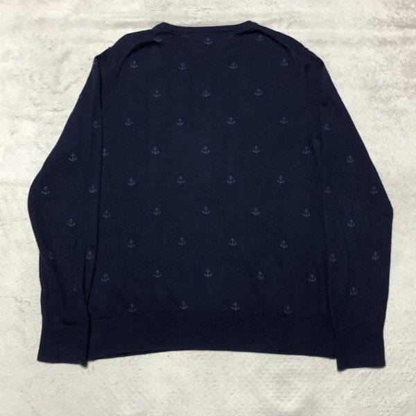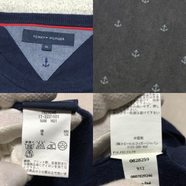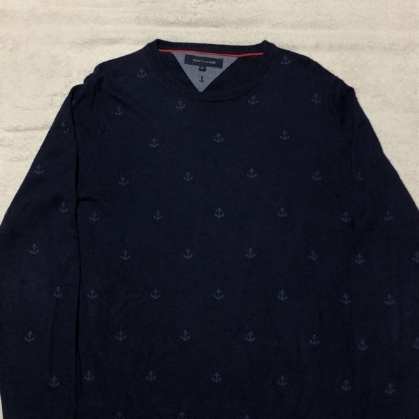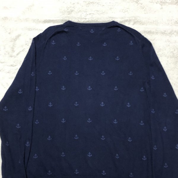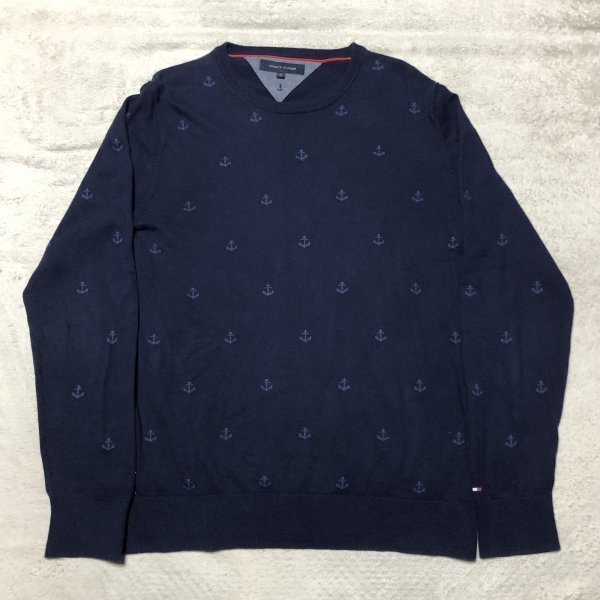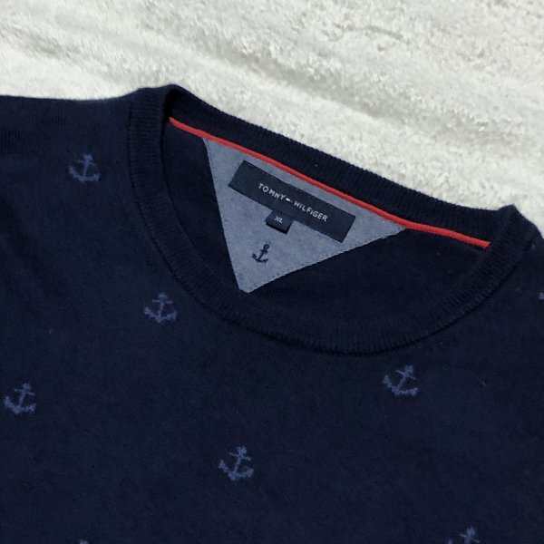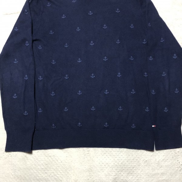TOMMY HILFIGER トミーヒルフィガー コットンウール ニットセーター 碇総柄 ネイビー 人気の大きいサイズ XLサイズ