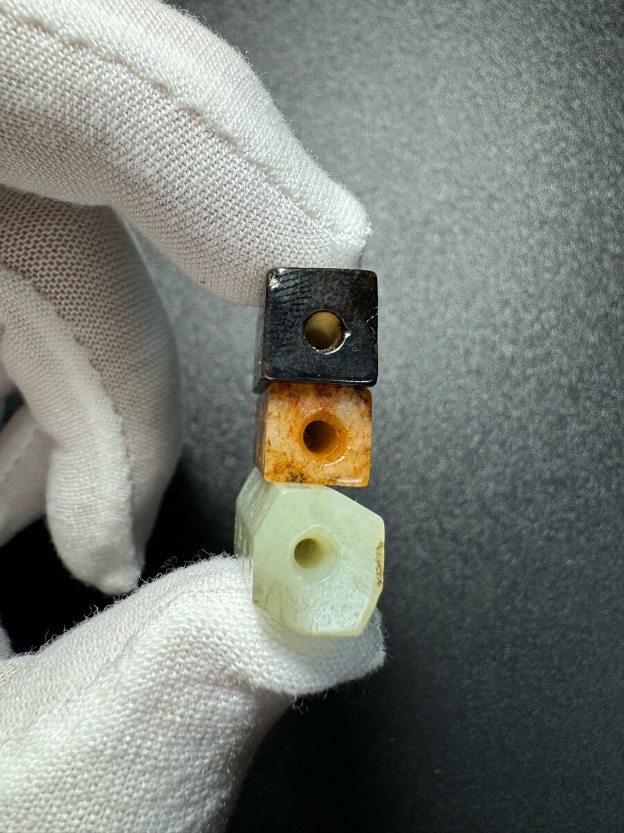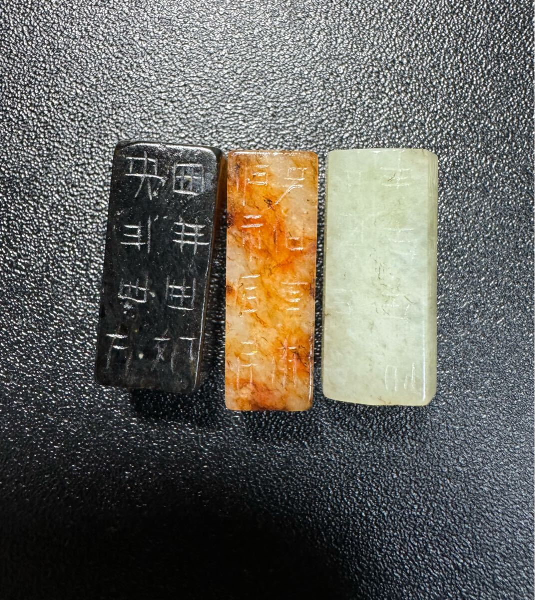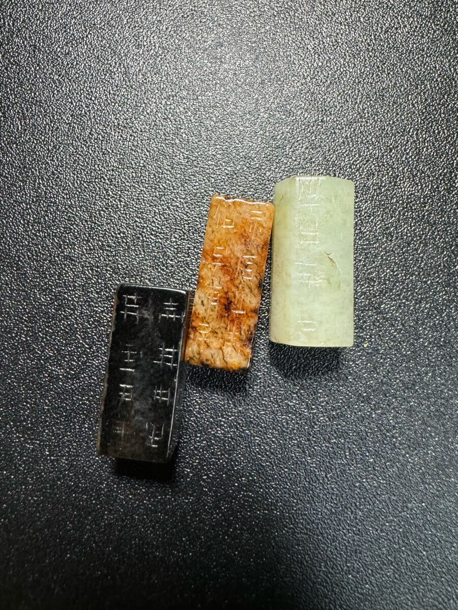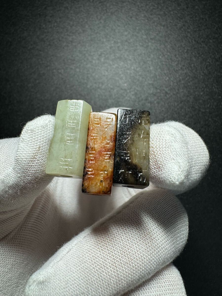 三つまとめて 本玉 お守り 極細工 和田玉 漢~唐代 骨董 玉彫 古玩 開運 詳細不明
