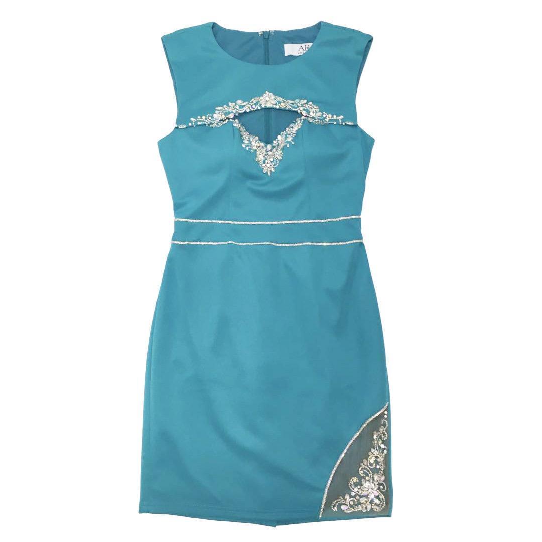 バストカットビジューウエストマークタイトミニドレス | AR24226