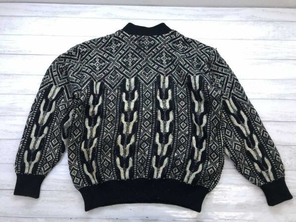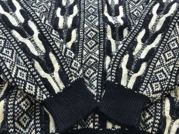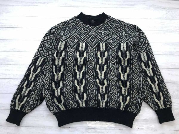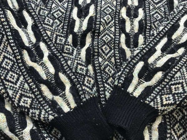 アクシー axy ミズノ MIZUNO レトロ ゴルフ 民族エスニック 3D 立体模様編み ジャガードニット セーター メンズ ウール100% LL 黒ベージュ です。