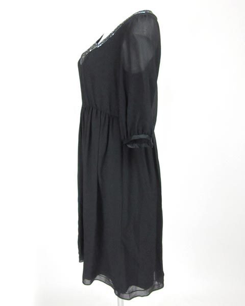 | ラピスルーチェ LAPIS LUCE per BEAMS 黒 半袖 ビーズ付 ワンピース 36 |