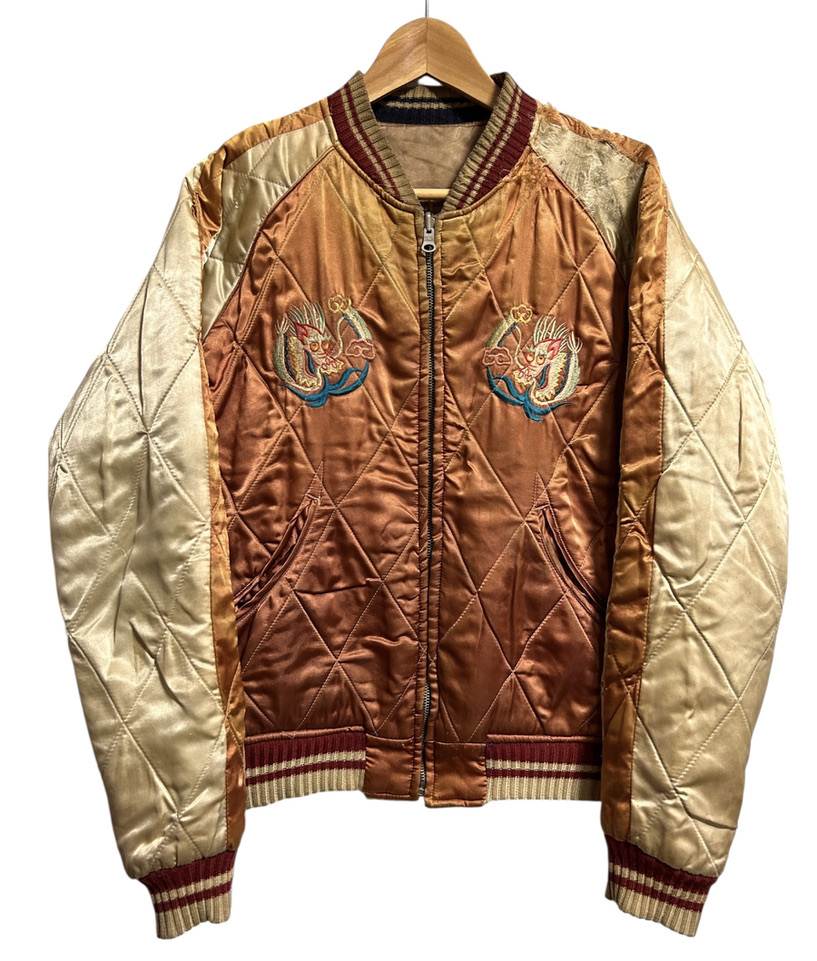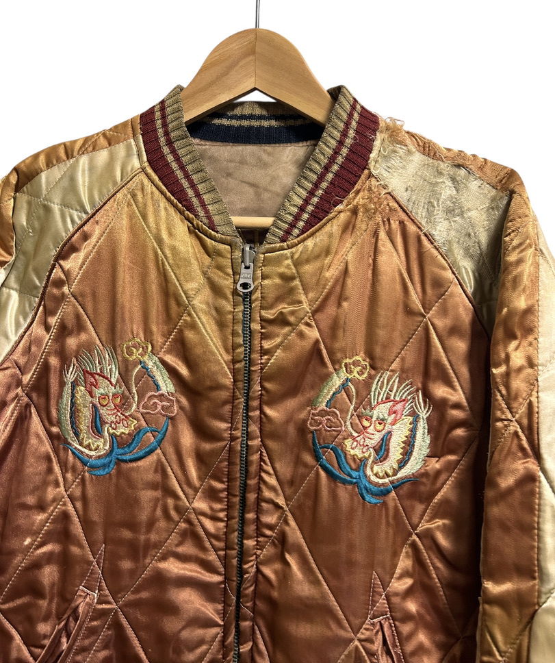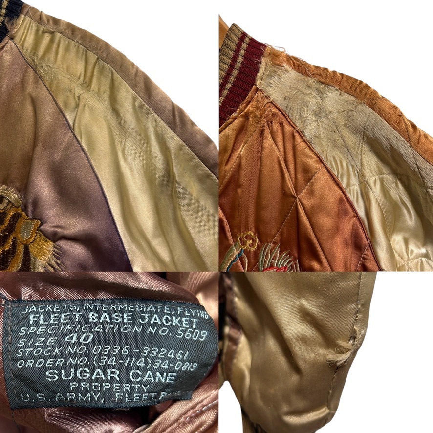 希少 初期 ボロ▽SUGAR CANE シュガーケーン スカジャン スーベニアジャケット 40 キルティング 龍 JAPAN 日本 沖縄 ビンテージ復刻
