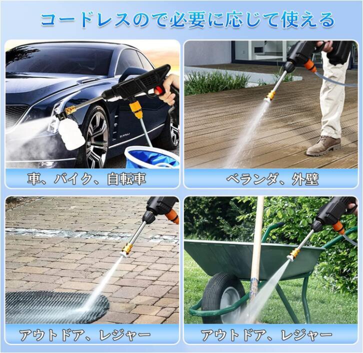 高圧洗浄機 コードレス 充電式 水噴射量5.2L/min 21V 500W 自吸式 ポータブル 洗車機 強力噴射 ハンディウォッシャー 大容量バッテリー付