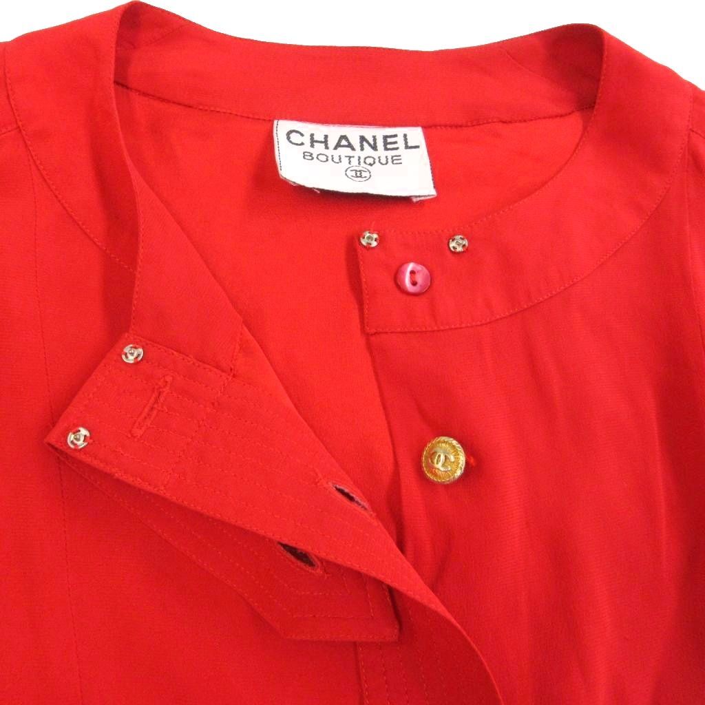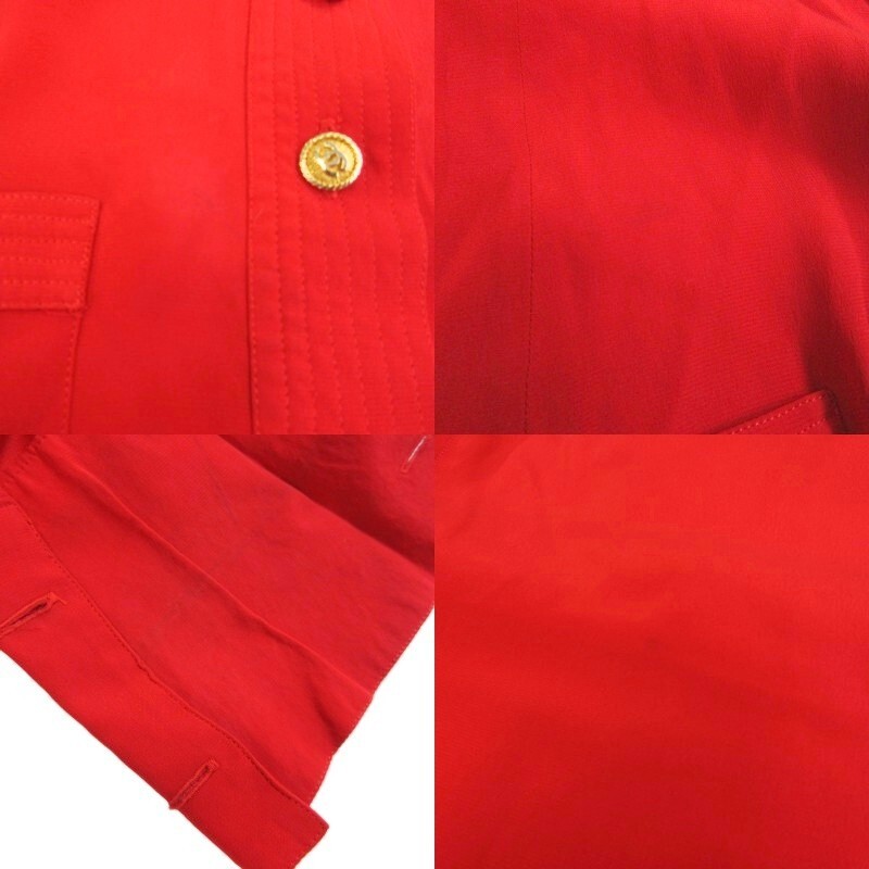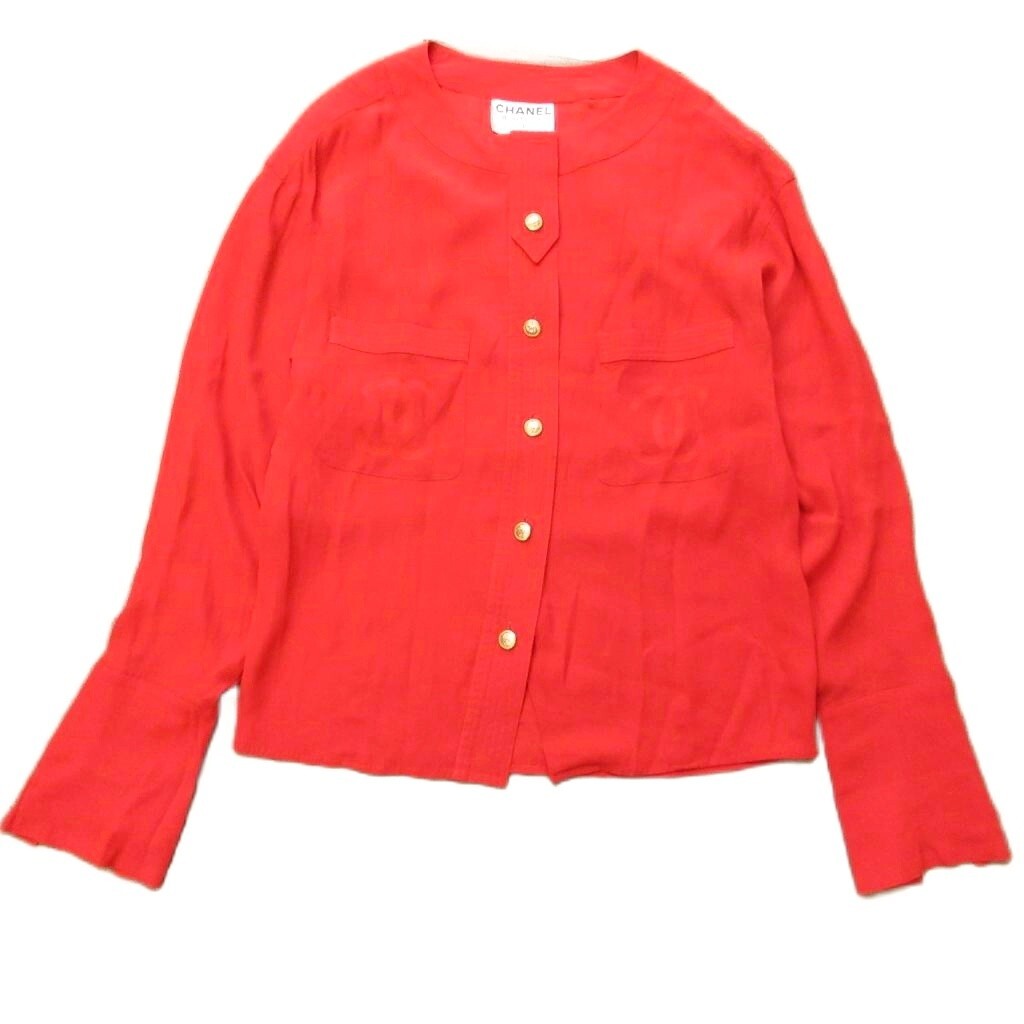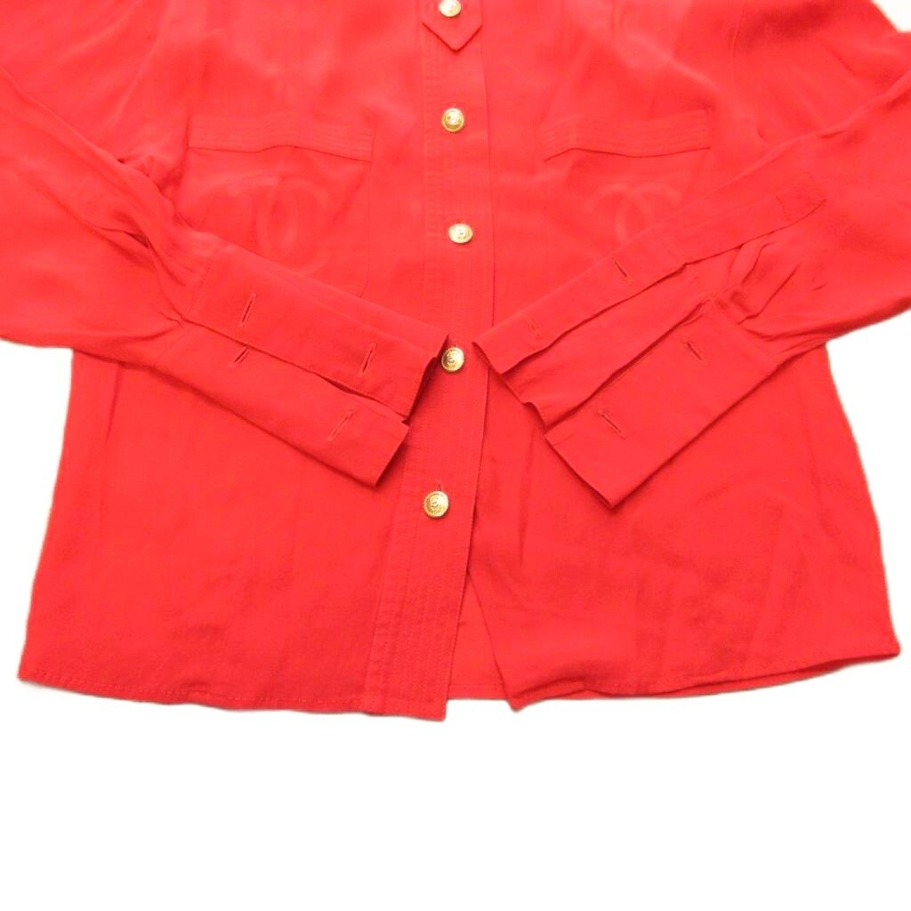 シャネル CHANEL ココマーク カフスシャツ ブラウス 長袖 金ボタン 赤 レッド F ■MNK1 1002 レディース